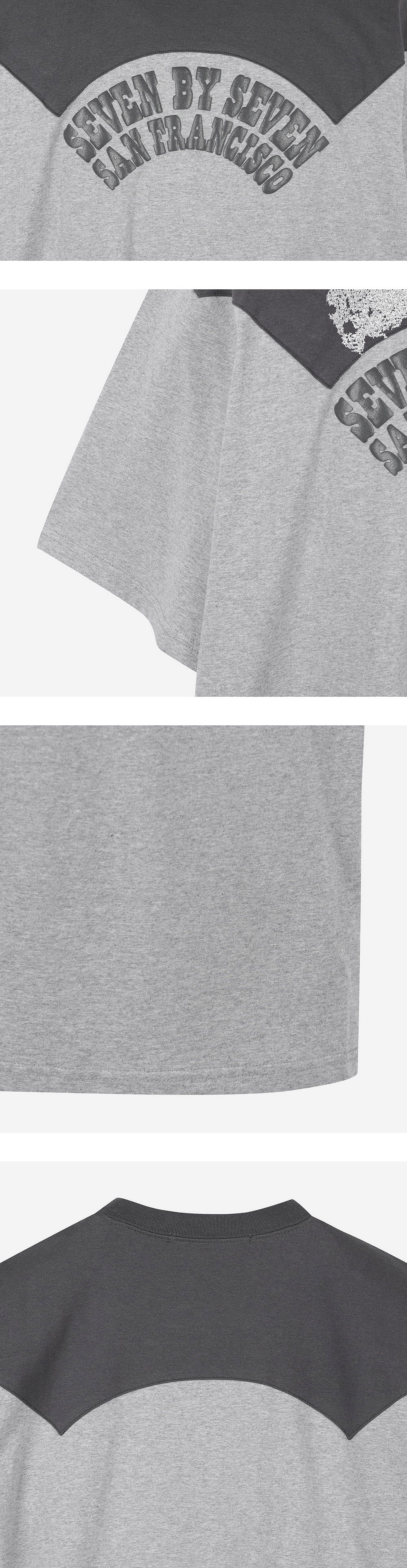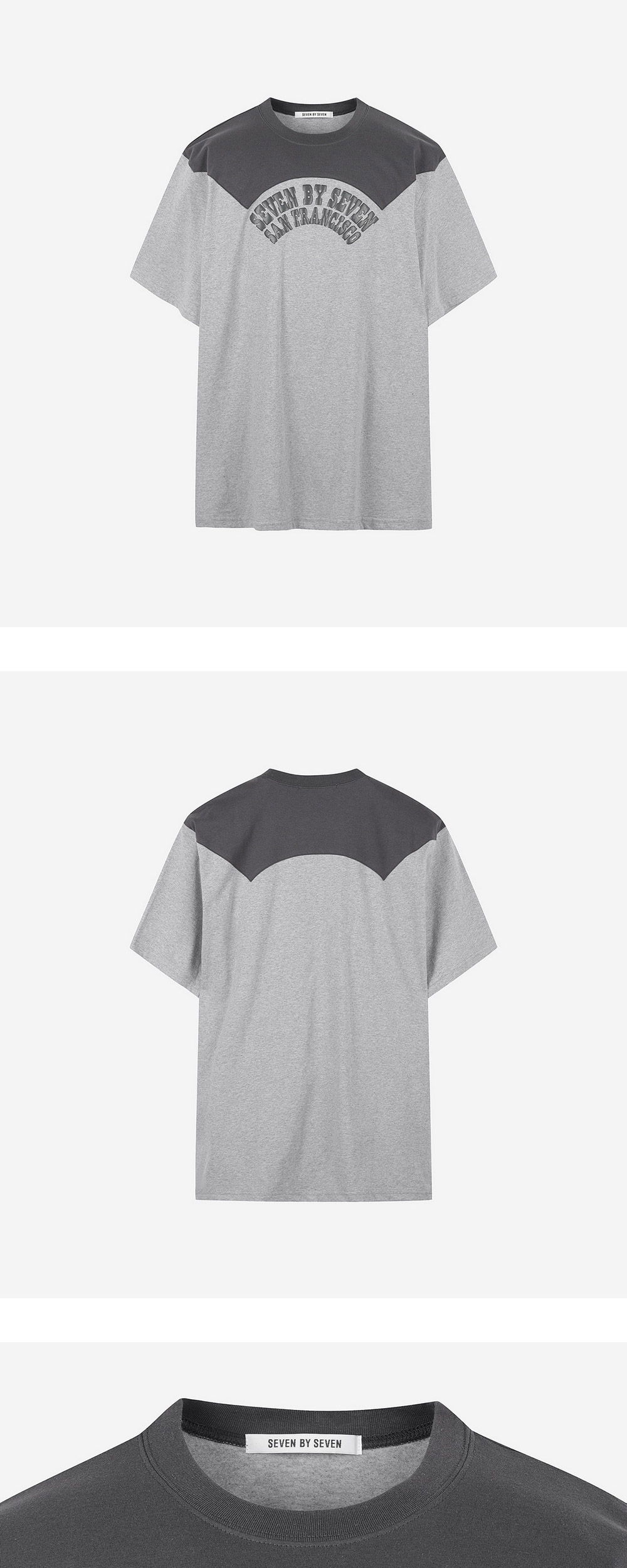 세븐바이세븐 특유의 감각적인 디테일이 돋보이는 웨스턴 요크 프린트 티셔츠입니다. 그레이와 차콜 컬러의 배색 활용과 레터링 그래픽 프린팅이 매력적인 제품입니다. - 웨스턴 셔츠의 요크 모티브 - 흡습성이 높고, 속건성이 뛰어난 오픈 엔드 실을 사용 - SEVEN BY SEVEN의 뿌리이기도 한 San Francisco 그래픽