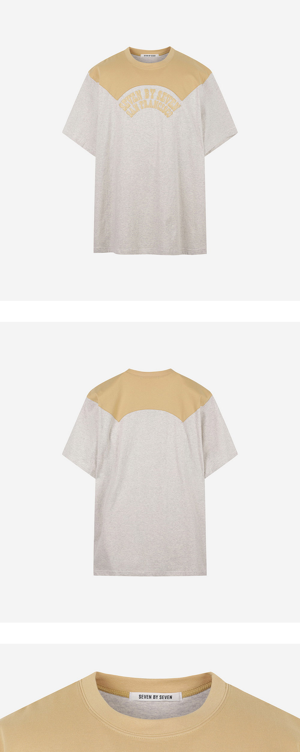 세븐바이세븐 특유의 감각적인 디테일이 돋보이는 웨스턴 요크 프린트 티셔츠입니다. 베이지와 옐로우 컬러의 배색 활용과 레터링 그래픽 프린팅이 매력적인 제품입니다. - 웨스턴 셔츠의 요크 모티브 - 흡습성이 높고, 속건성이 뛰어난 오픈 엔드 실을 사용 - SEVEN BY SEVEN의 뿌리이기도 한 San Francisco 그래픽 *모델 신체 스펙 : 185cm / 착용 사이즈 : L