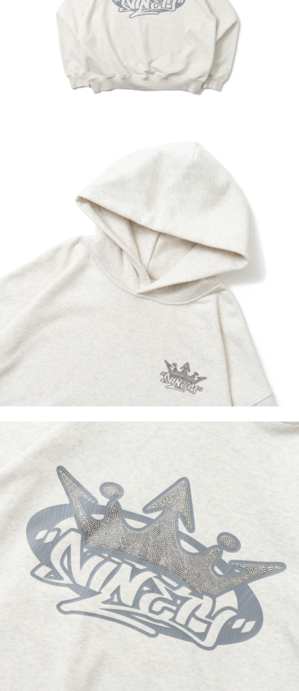 9090 King Logo Rhinestone Hoodie Oatmeal