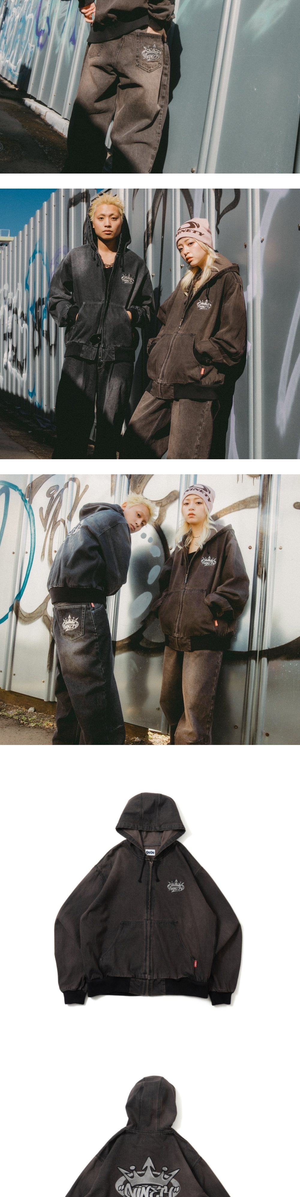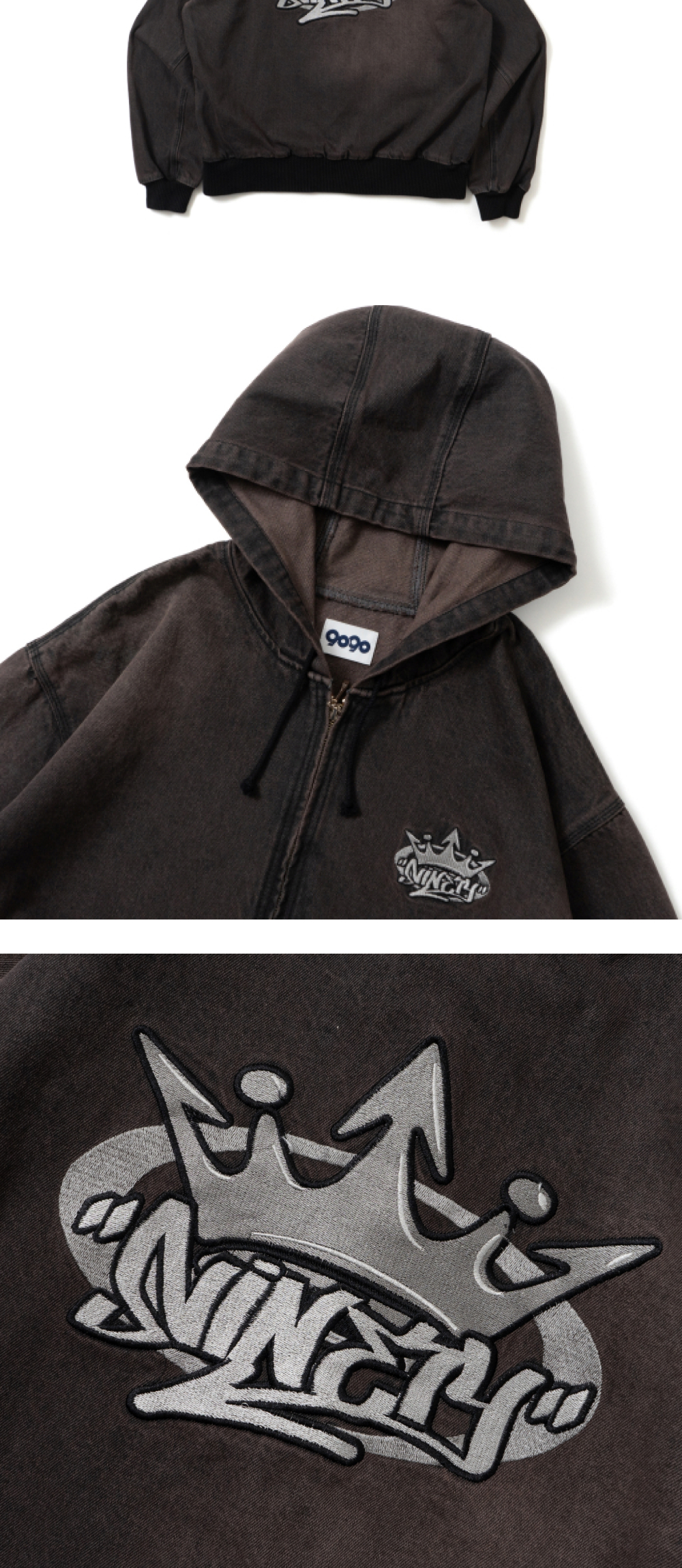 9090 킹 로고 빈티지 데님 후드 다크 브라운