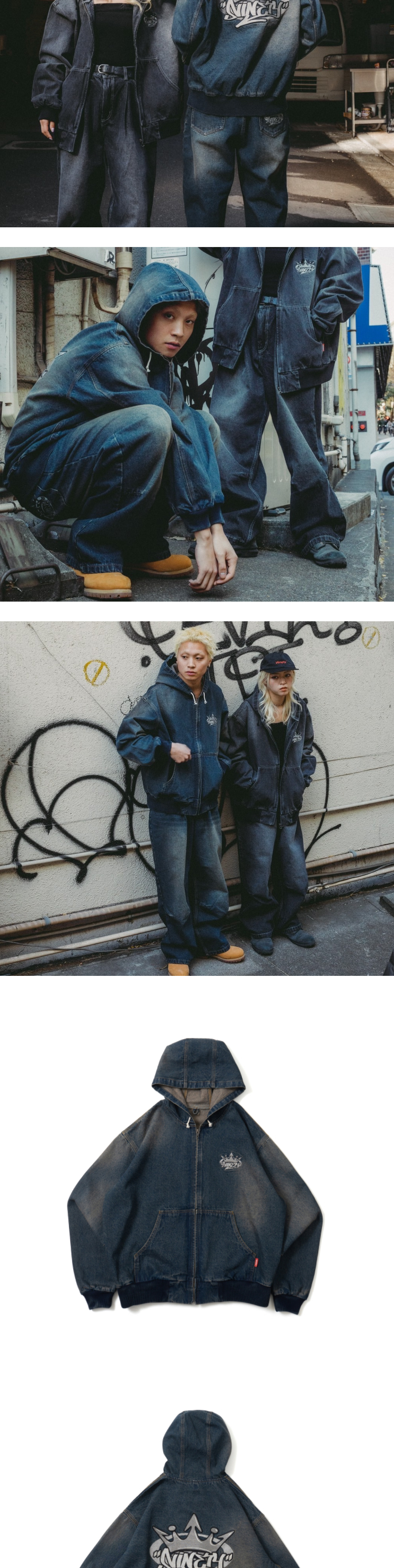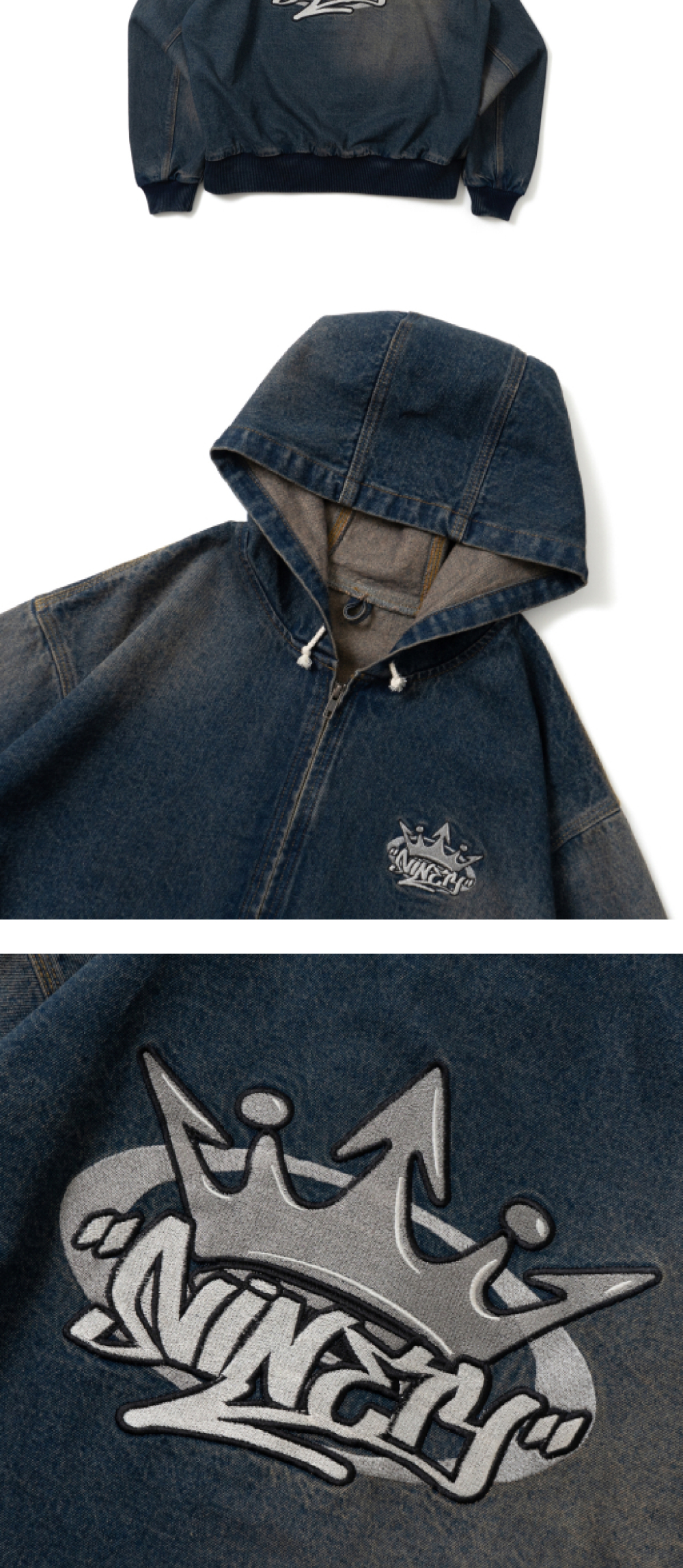 9090 킹 로고 빈티지 데님 후드 인디고 옐로우
