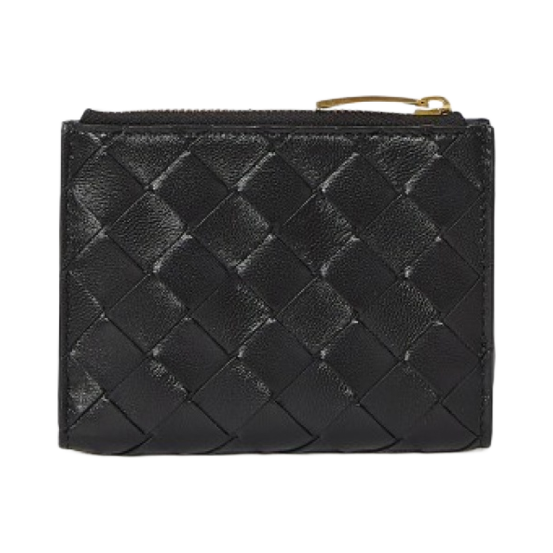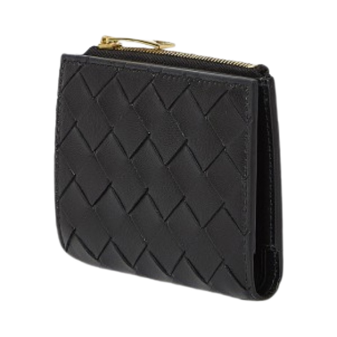 보테가 베네타 스몰 인트레치아토 바이폴드 지퍼 지갑 블랙
