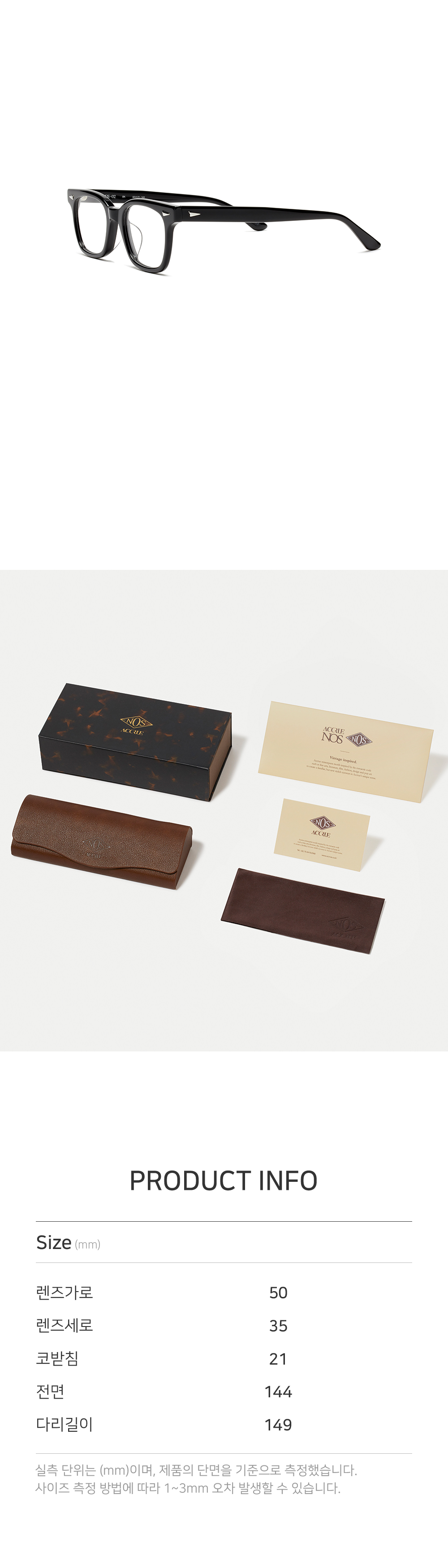 *안경테에 장착되어있는 렌즈는 프레임의 형태의 변형을 막기 위한 플라스틱 데모렌즈입니다.