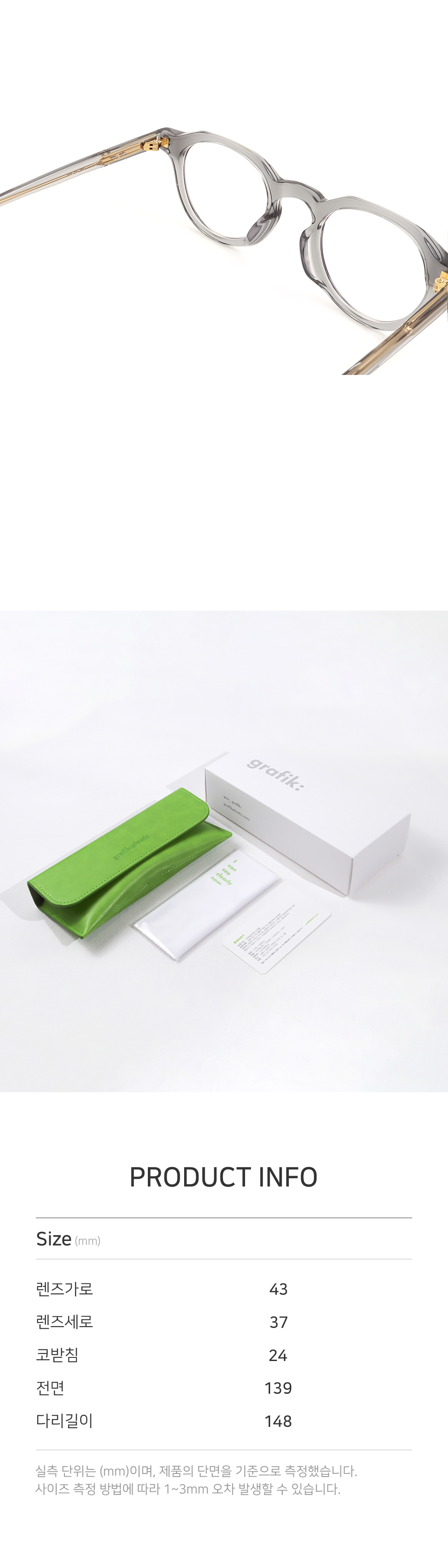 *안경테에 장착되어있는 렌즈는 프레임의 형태의 변형을 막기 위한 플라스틱 데모렌즈입니다.