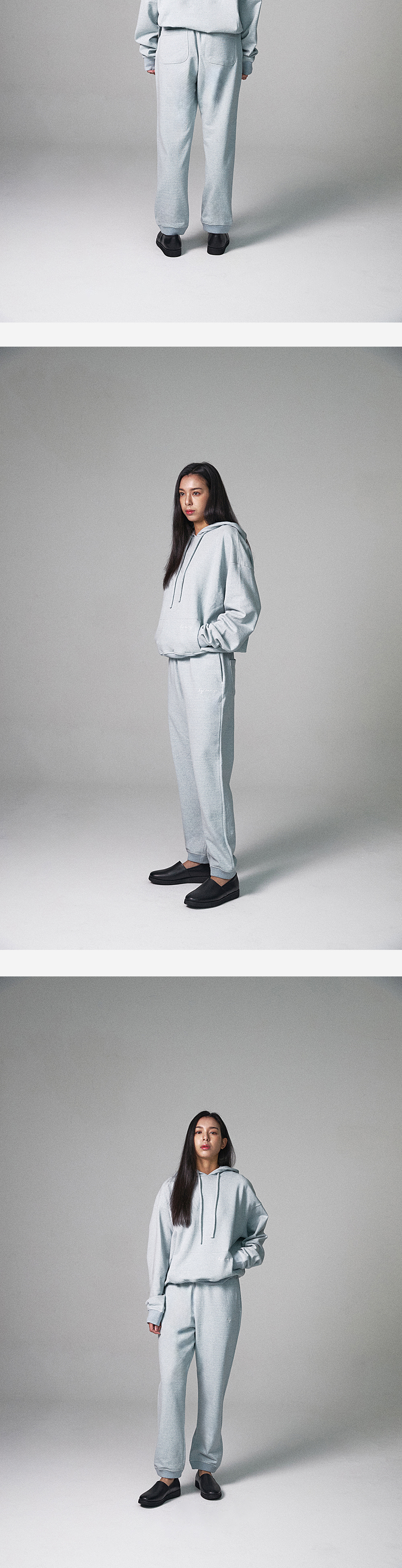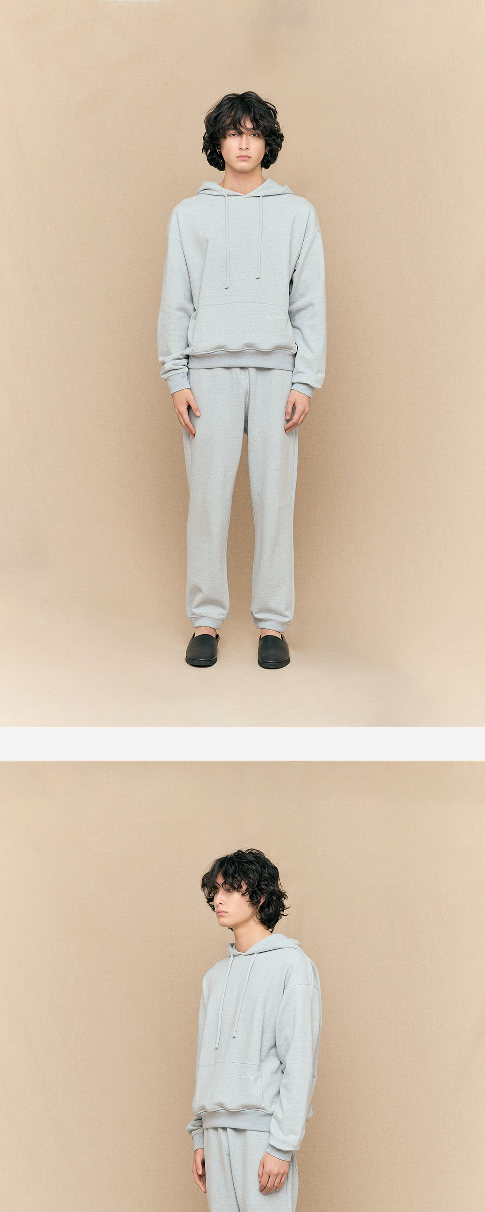 - MODEL : 186CM 72KG TOP - L BOTTOM - M - MODEL : 176CM 53KG TOP - S BOTTOM - S TOP -S (95), M (100), L (105), XL (110) - Japanese french cotton - Like denim washed - Oversized fit - Logo embroidered
