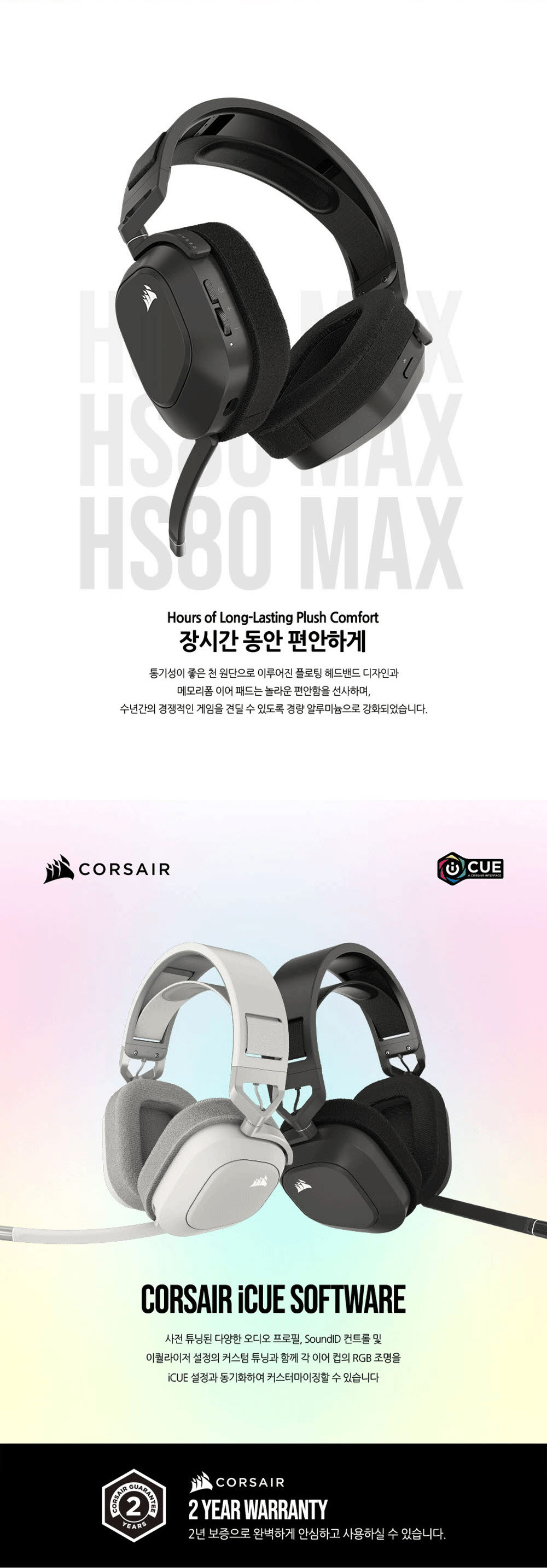 커세어 HS80 MAX RGB 무선 게이밍 헤드셋 스틸 그레이