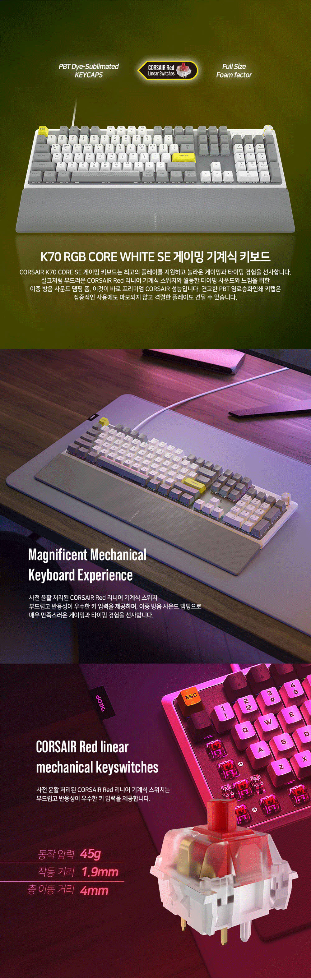 커세어 K70 RGB CORE SE 게이밍 기계식 키보드 적축 화이트