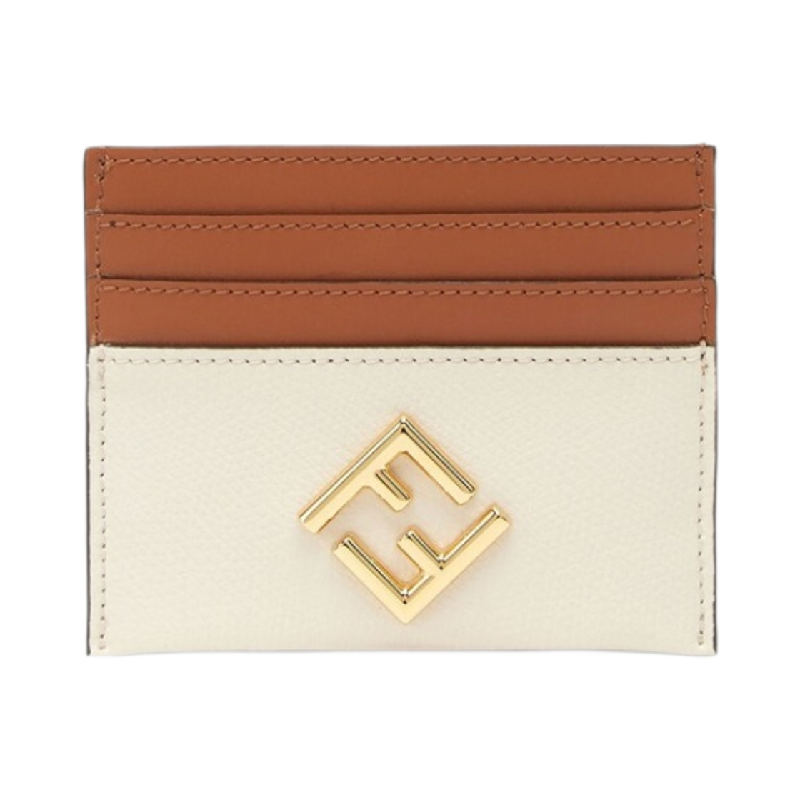 Fendi FF Diamonds Two-Tone Leather Flat Card Case Brown Camellia