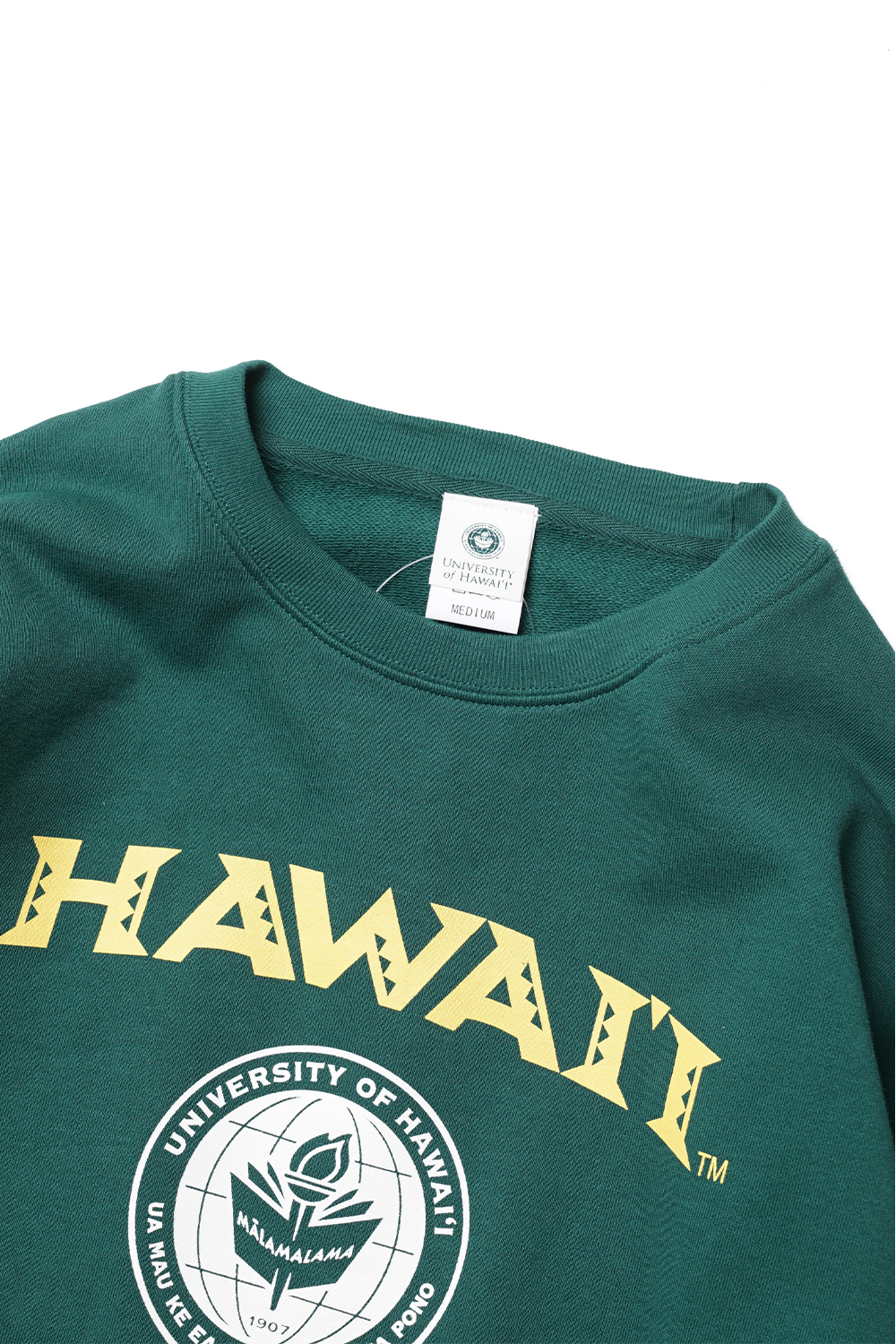 Houston Japan HWUS-049 Print Sweat Shirts (HAWAII) - Green '휴스턴 재팬'에서 전개하는 '화와이 대학교'과의 협업 아이템입니다. 화와이 호놀룰루주에 위치한 '화와이 대학교'는 1907년에 설립되었습니다. 해외 최초의 한국학 센터가 있으며, 북미에서 가장 많은 한국한 연구자가 재직하고 있습니다. 휴스턴에서 전개하는 미 대학 프린트 스웻셔츠는 코튼 100%의 탄력있는 소재감으로 여유있는 실루엣 ,그리고 드롭 숄더 타입으로 착용시 편안한 느낌이 특징입니다. 착용시 'L 사이즈'가 '100-103', 'XL 사이즈'가 '105-108' 정도입니다.