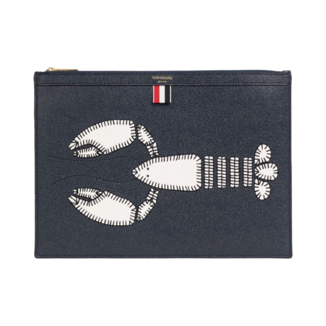 Thom Browne Pebble Grain Leather Lobster Medium Document Holder Navy