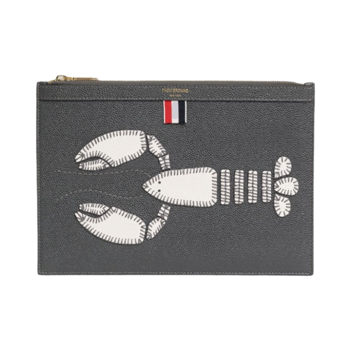 Thom Browne Pebble Grain Leather Lobster Medium Document Holder Dark Grey