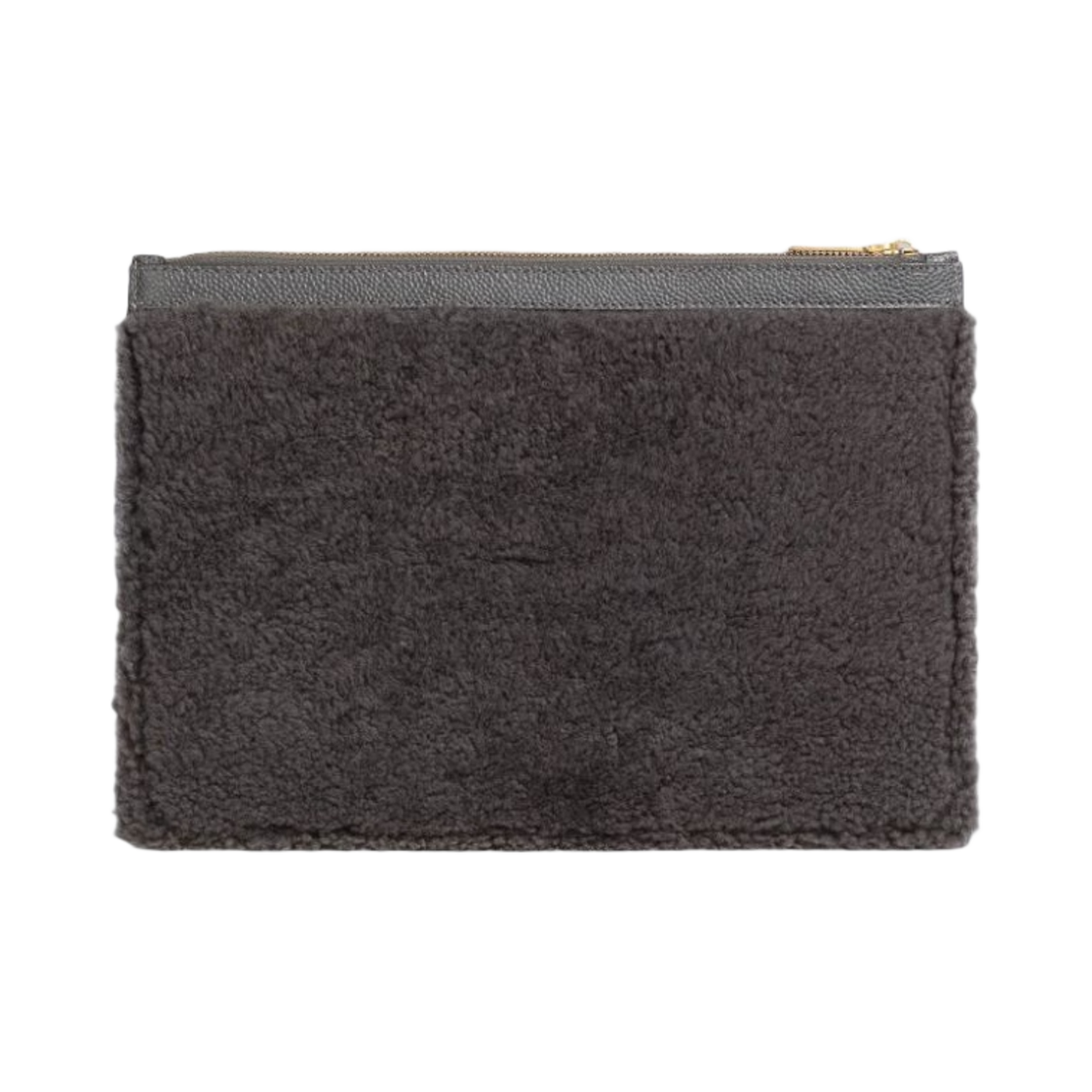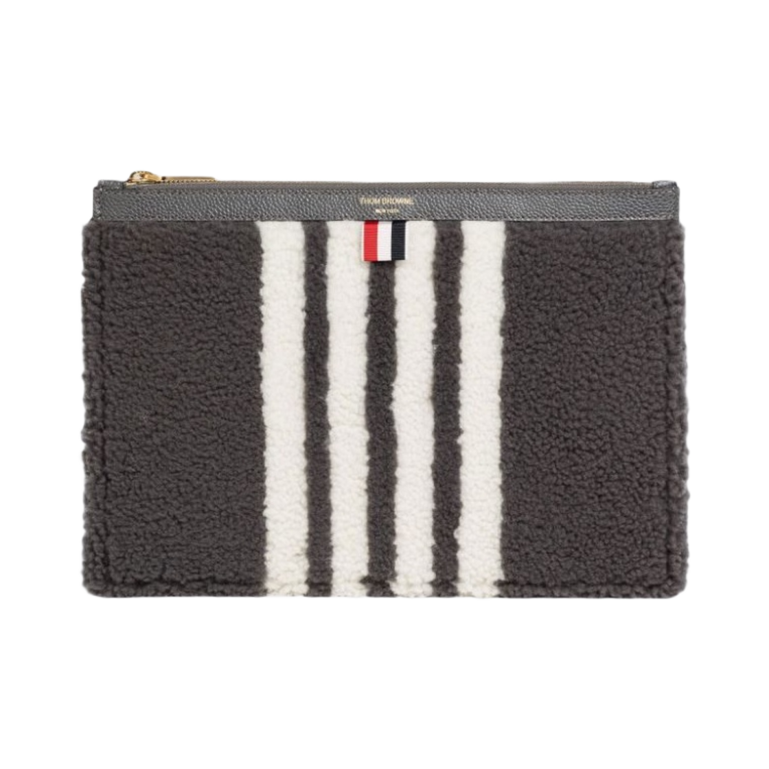 Thom Browne Curly Merino Shearling 4-Bar Small Document Holder Medium Grey