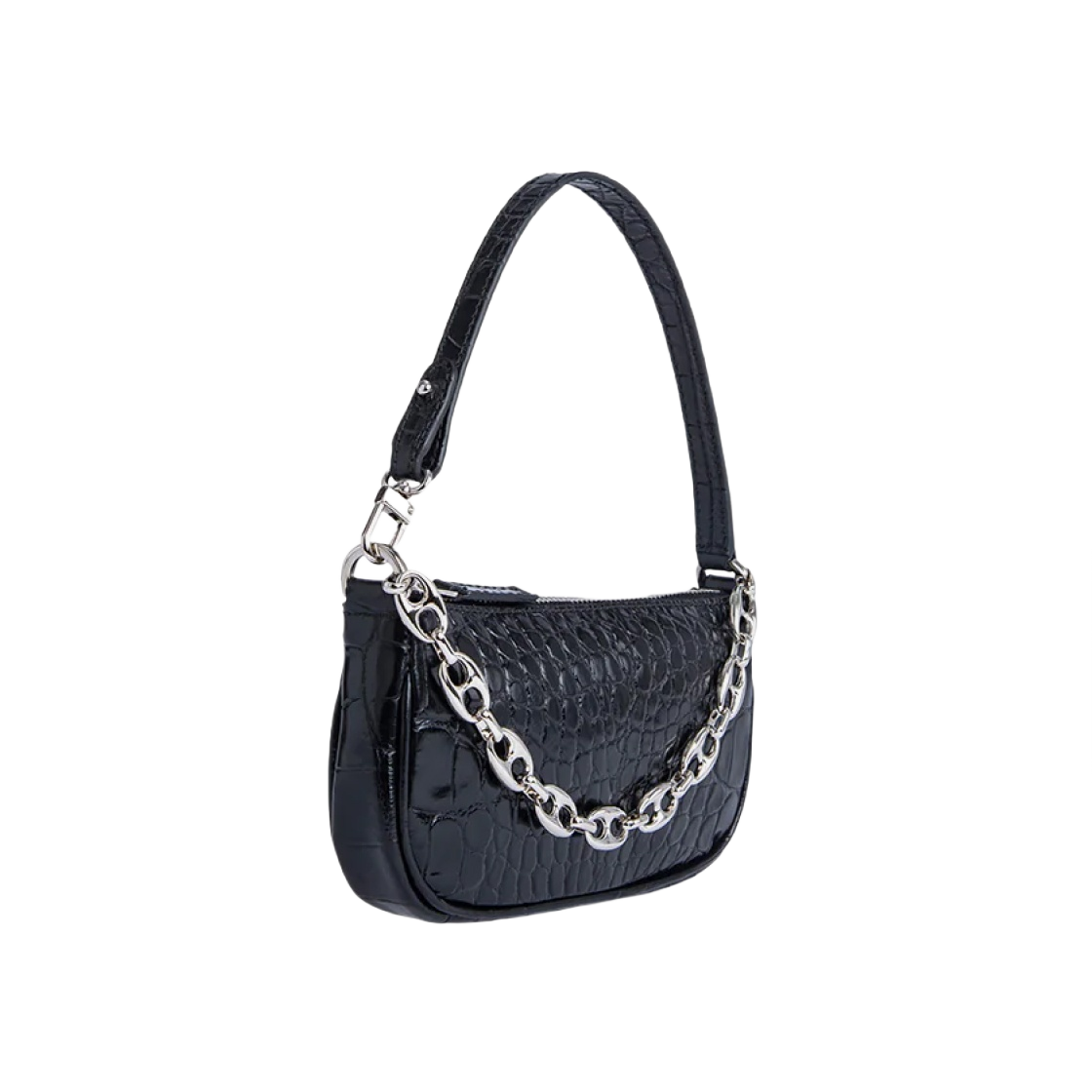 (W) By Far Croco Embossed Leather Mini Rachel Black
