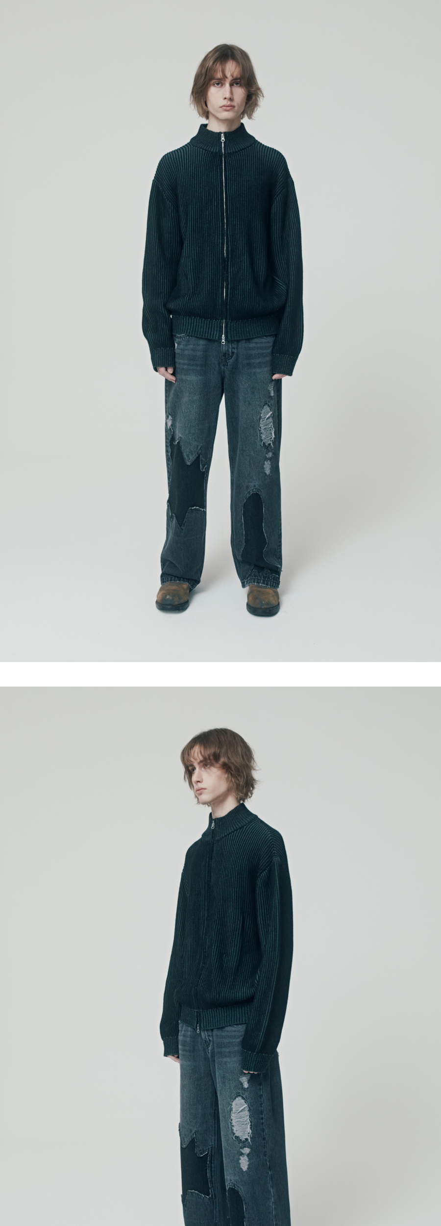 더바이닐하우스 버티컬 패턴 가디건 블랙