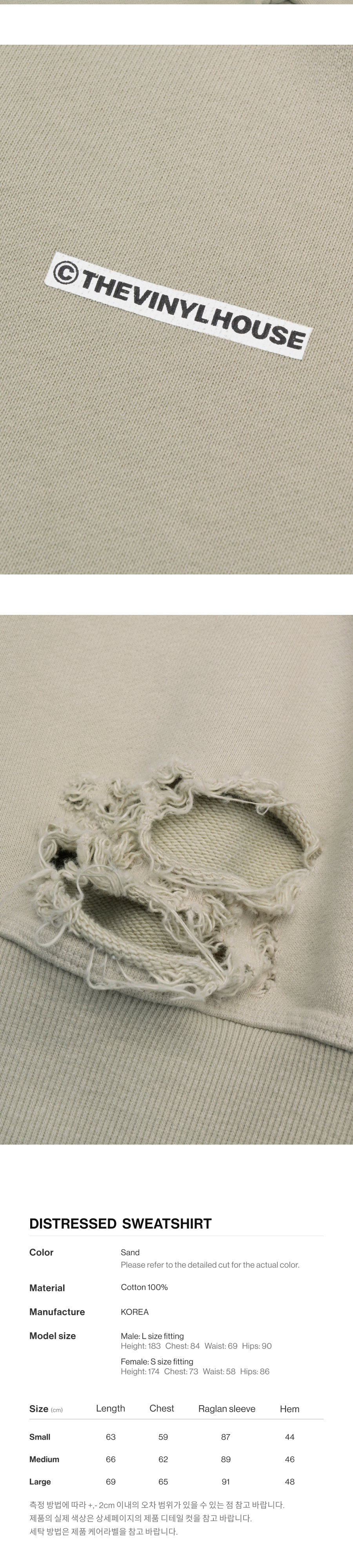 더바이닐하우스 디스트레스드 스웨트셔츠 샌드