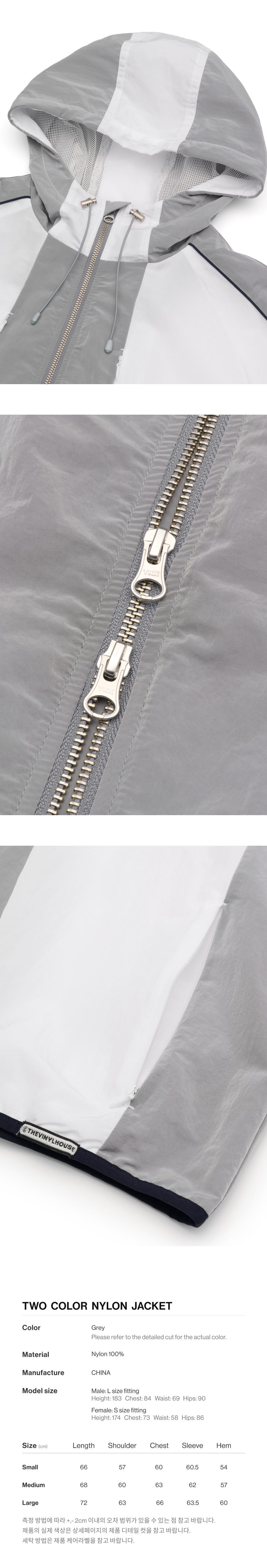 더바이닐하우스 투 컬러 나일론 자켓 그레이