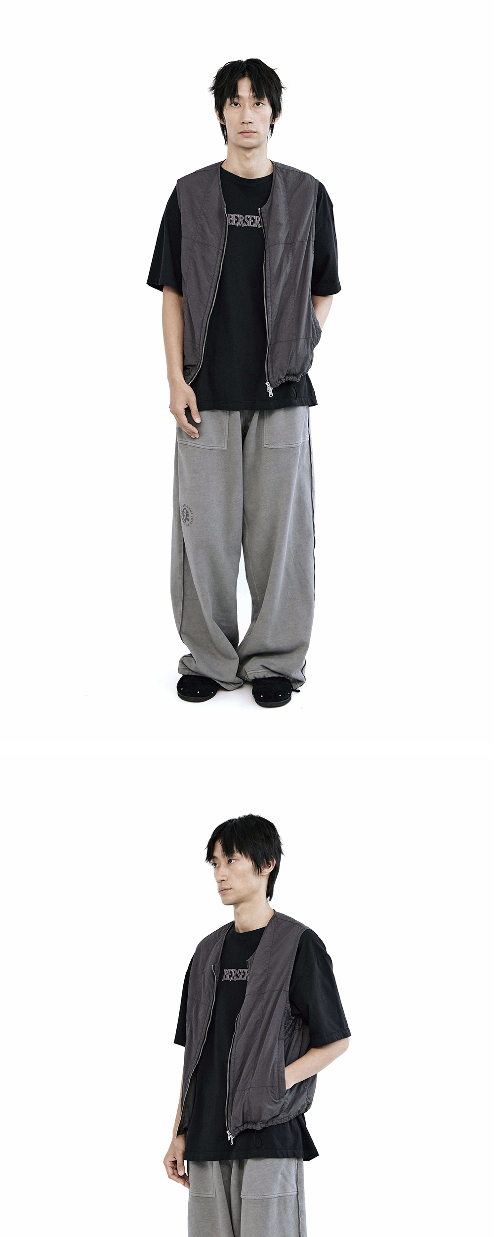 1011 fatigue sweat pants 1.2v 23SS부터 발매된 디자인, '퍼티그 스웻 팬츠'를 베이스로 심볼 로고가 프린트된 협업 모델. 제품 자체의 와이드한 볼륨과 매력적으로 떨어지는 특유의 실루엣이 특징, 1.2v 경우 무릎 분량과 전체볼륨이 조금 더 좁아졌습니다. 그래픽 프린팅은 빛바랜 질감이며, 내려입을 시 끌리는 뒷축 하단에 샤무드 소재 대어주었습니다. 제품의 실루엣 및 그래픽의 적용 위치 등은 와이드한 바스켓볼 팬츠의 뉘앙스를 함께 참조하였습니다. 워싱을 통해 구현한 빛바랜 색감과 자연스러운 사용감이 특징적입니다. - 1011갤러리 협업 컬렉션 제품, 심볼 형태 프린트 적용 - 가먼트 째로 워싱 - 전면 퍼티그 형태 포켓과 후면 패치 포켓 - 워시감이 강조되는 인심 절개 디자인 - 조절 가능한 하단 스트링 디테일 *모델: 170 중반 / 마른 체형, 3사이즈 착용 *직전 차수 대비, 금번 차수는 어두운 톤으로 완성됐습니다.