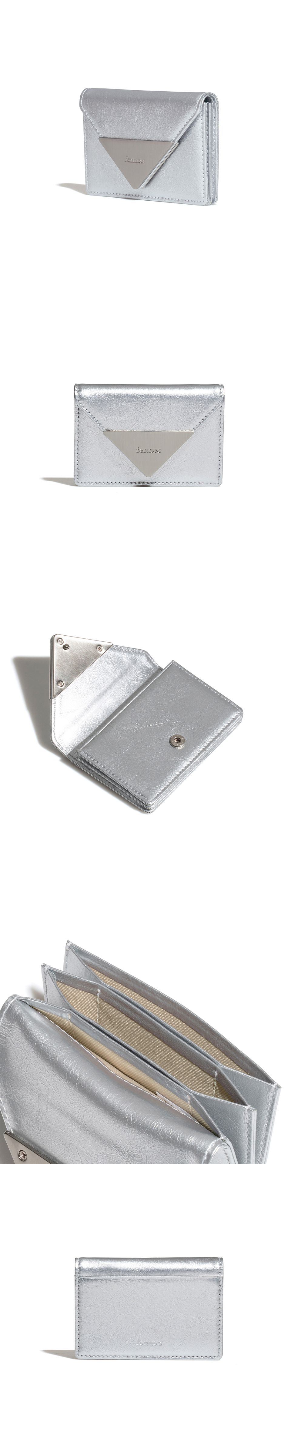 - 은은한 광택감과 자연스러운 크랙 텍스처의 크링클 소가죽 소재 - 로고가 각인된 니켈사틴 장식 포인트 - 3개의 아코디언 슬롯으로 카드, 명함, 지폐 등 분리 수납에 용이