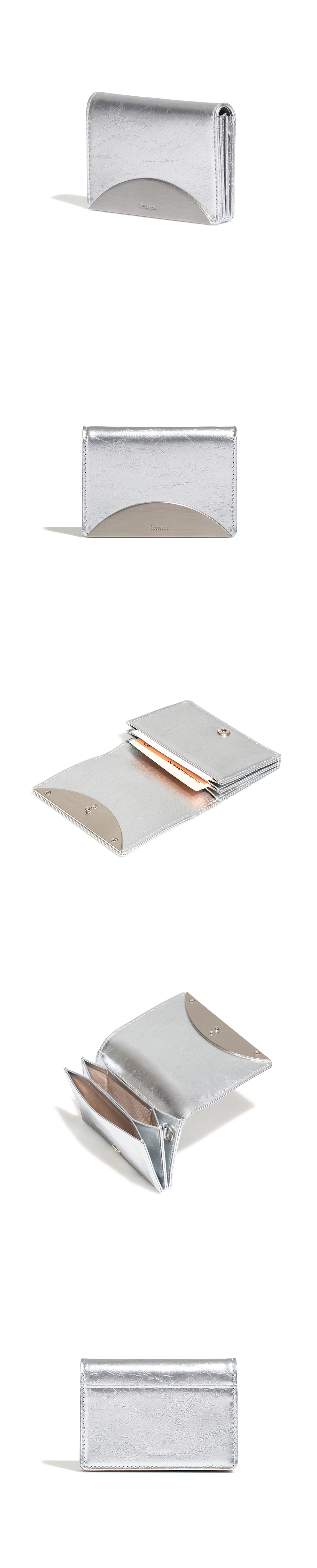- 은은한 광택감과 자연스러운 크랙 텍스처의 크링클 소가죽 소재 - 로고가 각인된 곡선형 메탈 장식 포인트 - 3개의 아코디언 슬롯으로, 카드, 명함, 지폐 등 분리 수납에 용이 - D링을 활용하여 키링, 체인 스트랩 등으로 다양한 연출 가능