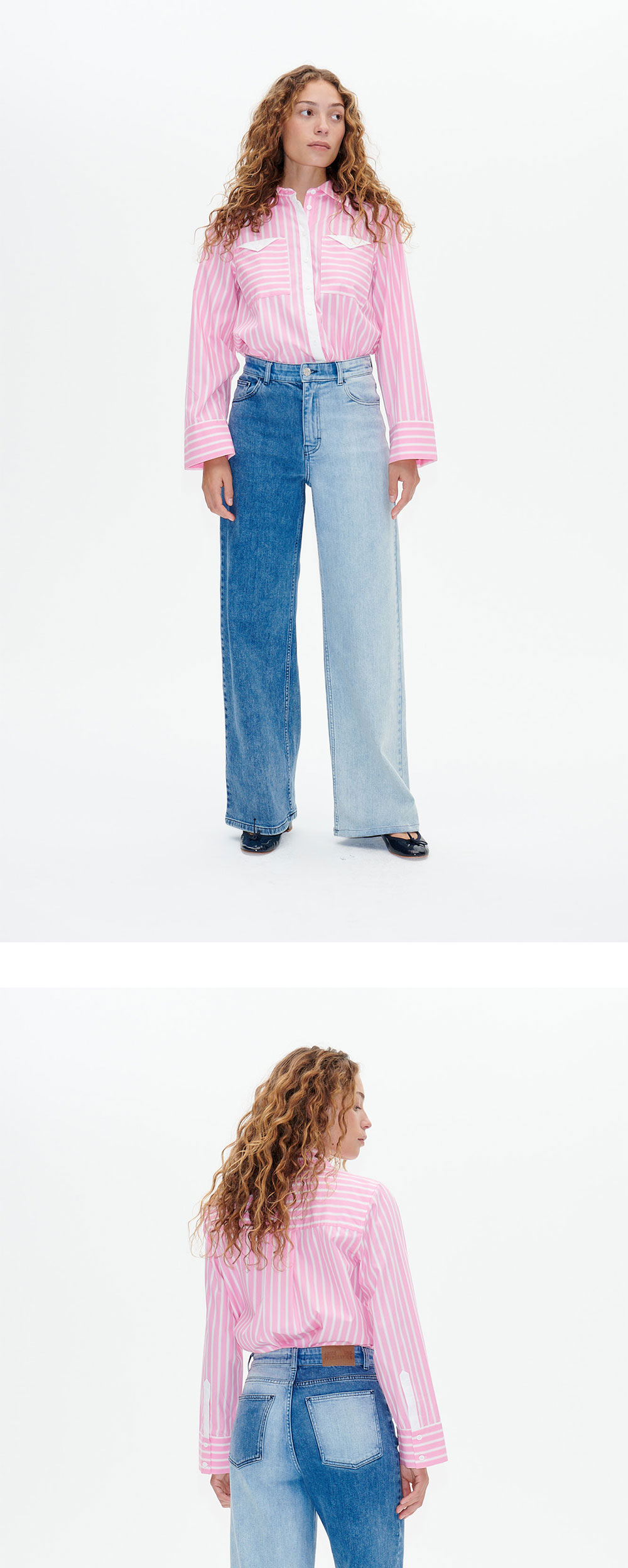 바움 운드 페르드가르텐의 니니 하이라이즈 와이드 레그 진은 두 가지 톤의 데님 믹스와 포켓 디테일이 특징입니다. - 하이 라이즈 - 와이드 레그 - 지퍼 여밈 - 5 포켓 스타일 - 허리 라벨 포인트 - 워시드 진 * 모델 신체 스펙 177cm / 착용 사이즈 36