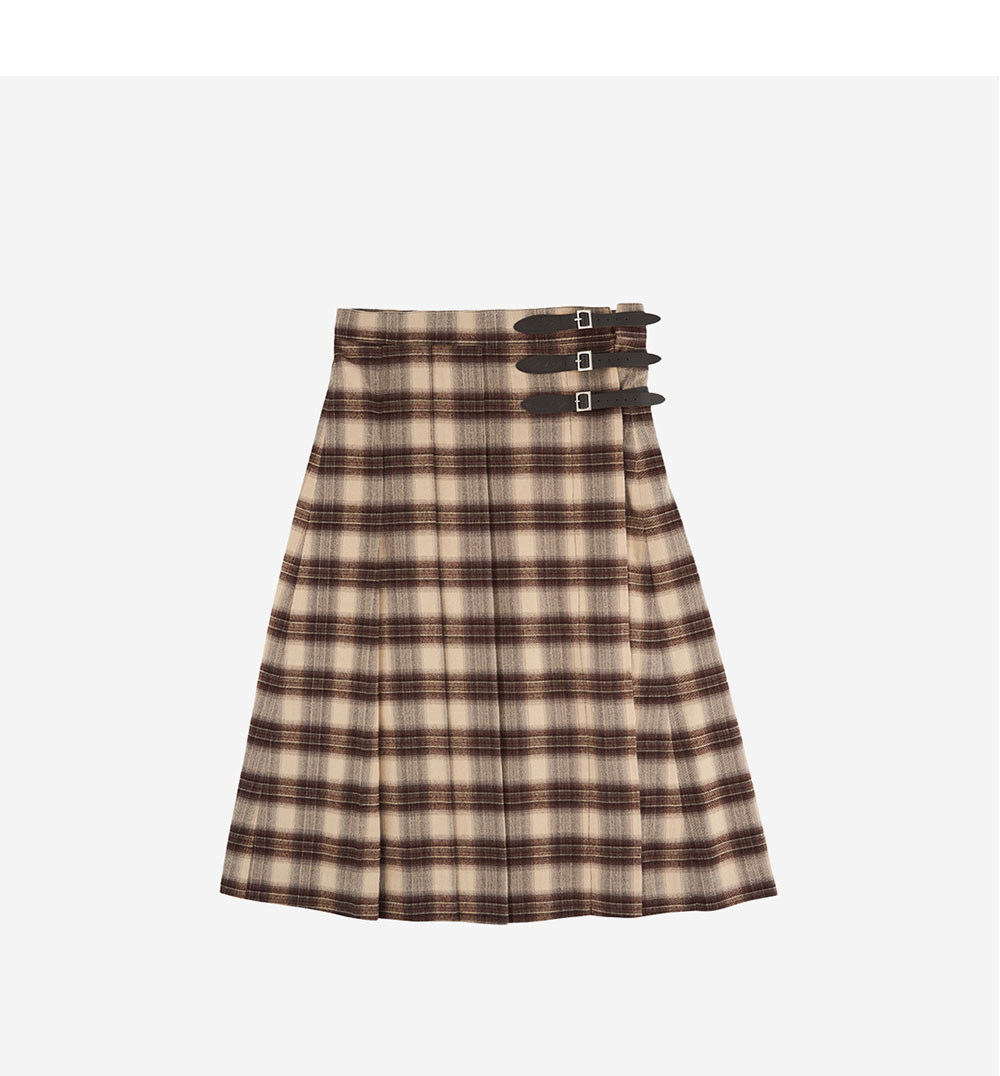플리츠 디테일이 가미된 사이즈 조절 가능한 랩 스커트, 레이어드 및 단품으로도 스타일링시에 활용도 높은 아이템