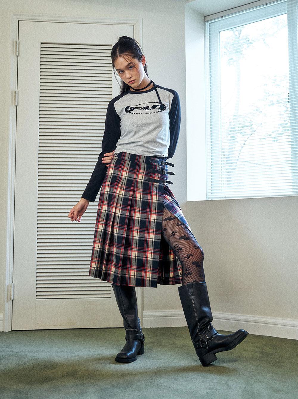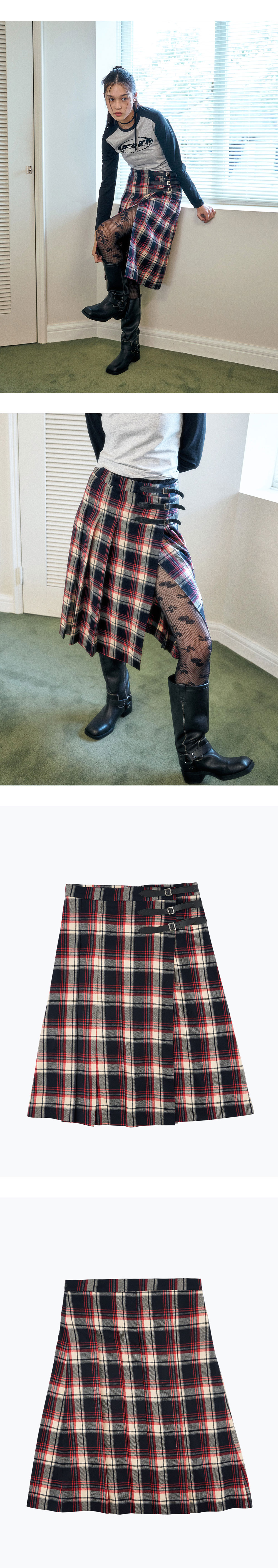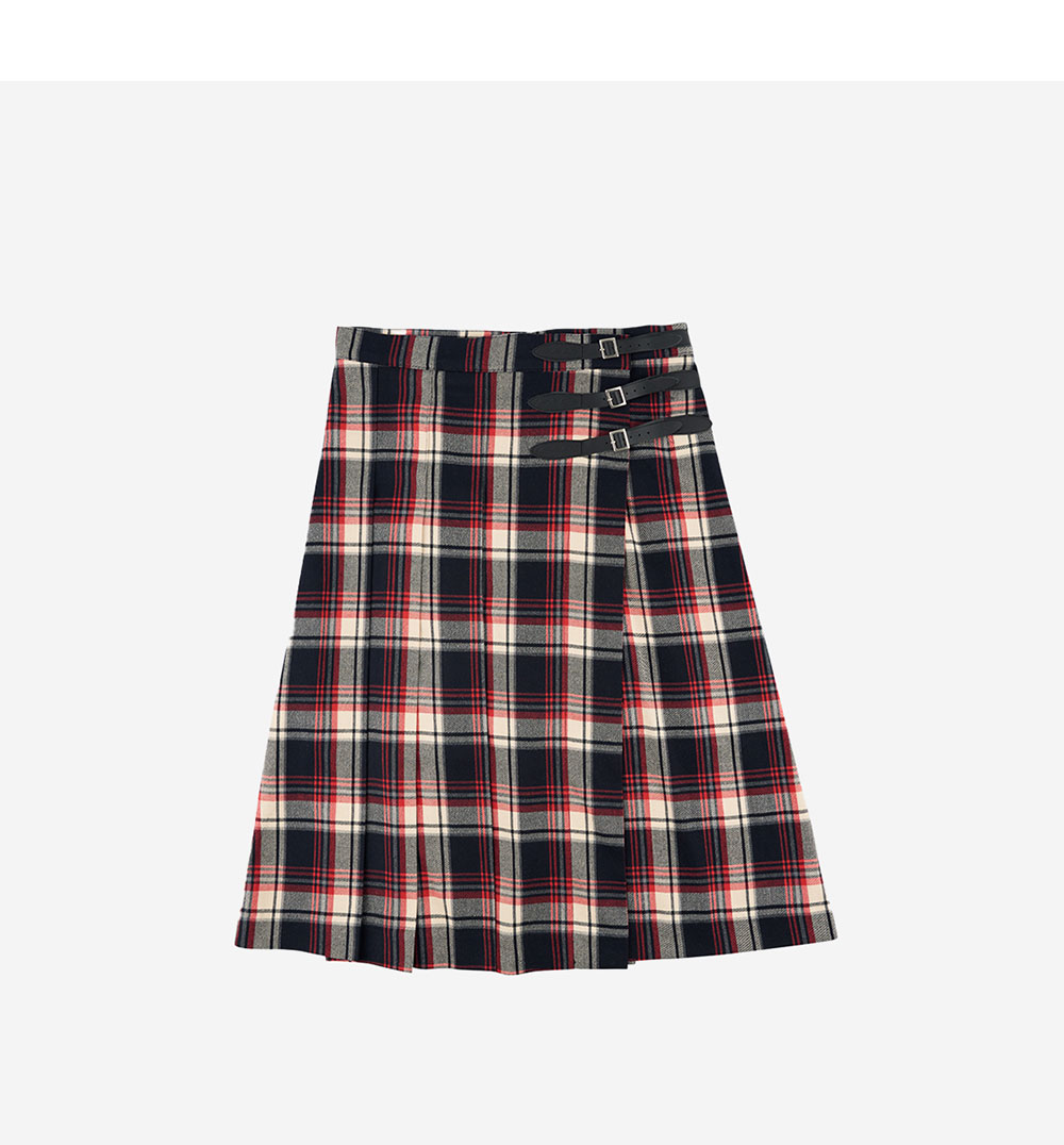 플리츠 디테일이 가미된 사이즈 조절 가능한 랩 스커트, 레이어드 및 단품으로도 스타일링시에 활용도 높은 아이템