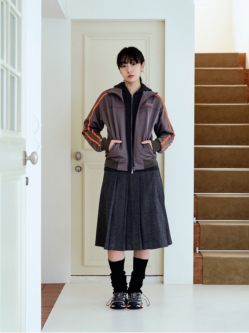면과 폴리에스터 실을 믹스하여 제직된 소재로, 데일리로 부담없이 착용 가능한 트랙수트, FAD 오리지널 자수 로고, 어깨와 소매 선을 따라 라인작업을 줘서 포인트가 되는 아이템