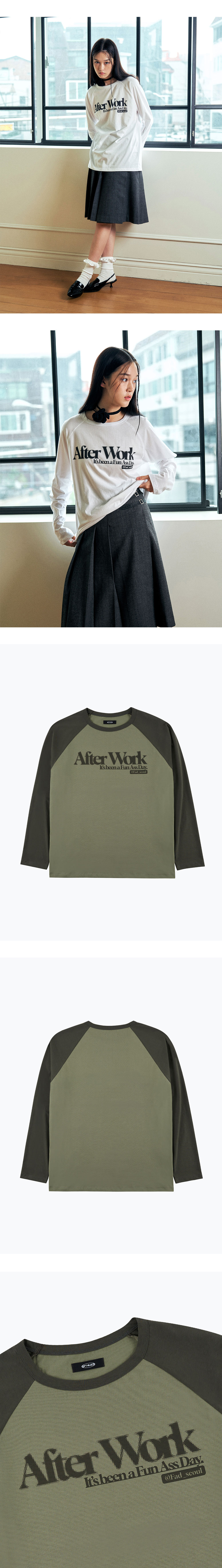 After work 시즌슬로건을 하프톤 방식의 그래픽 작업으로 구현, 30s 코튼의 적당한 두께감의 핏으로 활용도 높은 스타일링