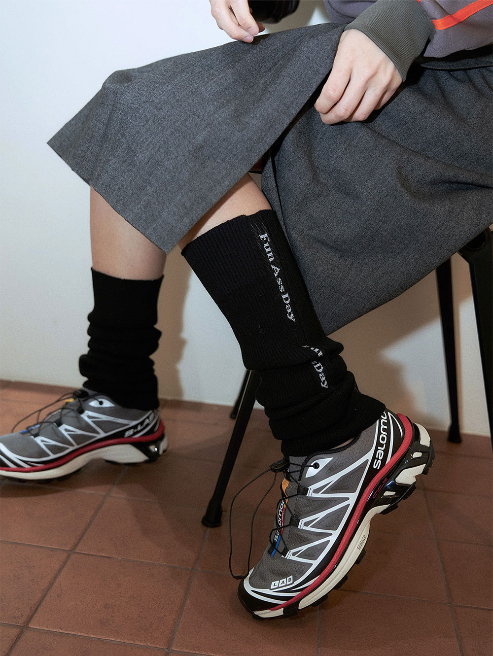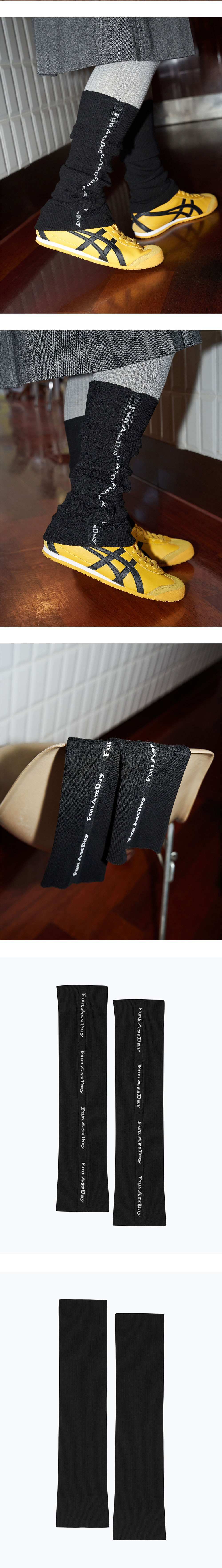 라인 디자인이 인상적인 레그워머로 라인테이핑 부분을 연출하는 방향에 따라 다양한 느낌으로 착용할 수 있는 레그 워머