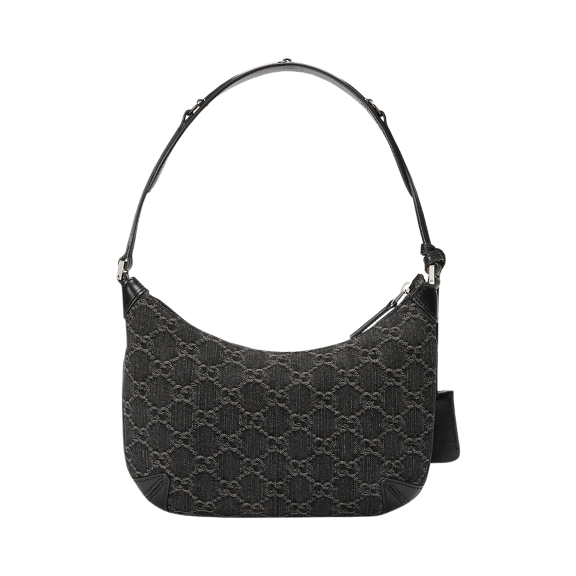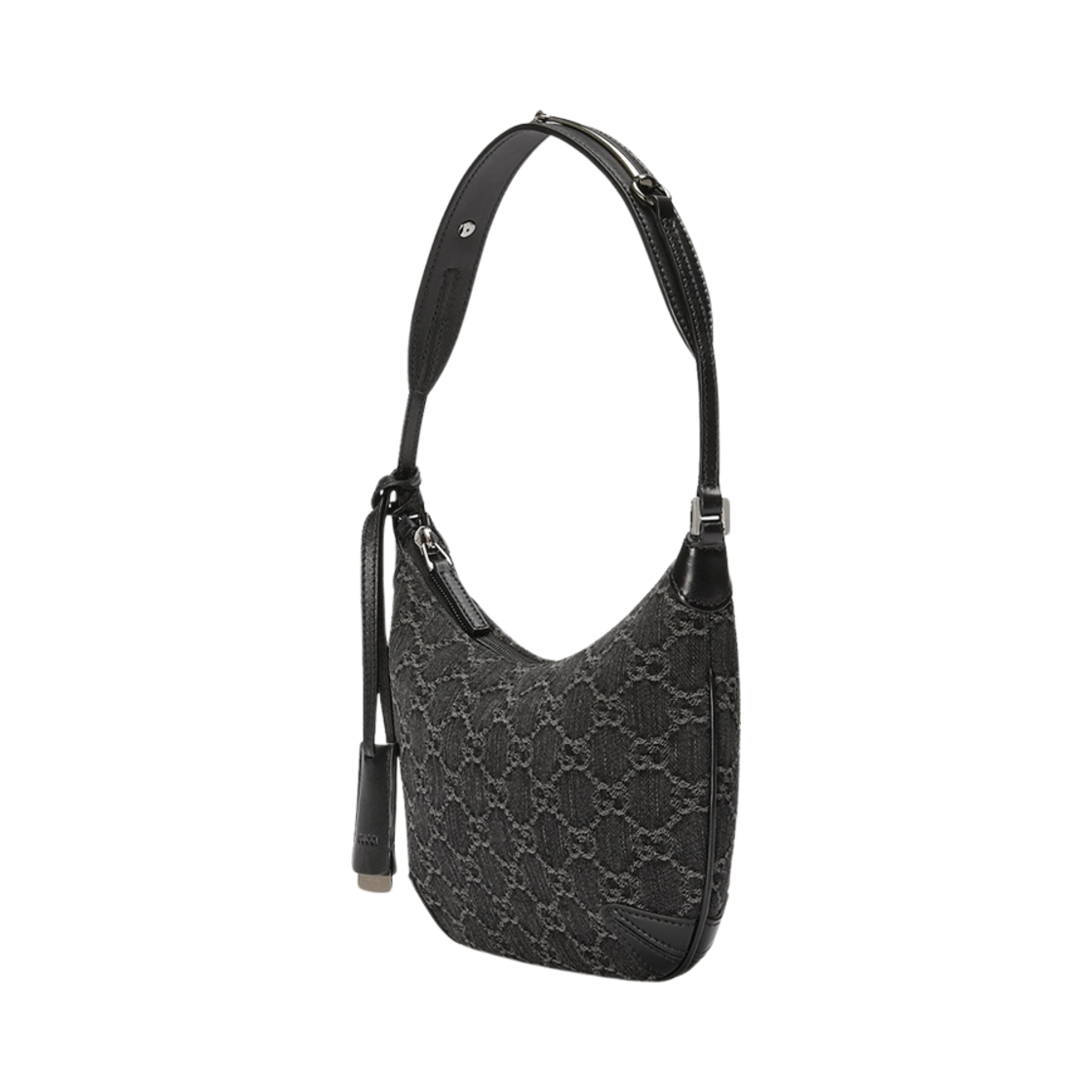 Gucci Horsebit Slim Small Shoulder Bag Black Grey GG Denim