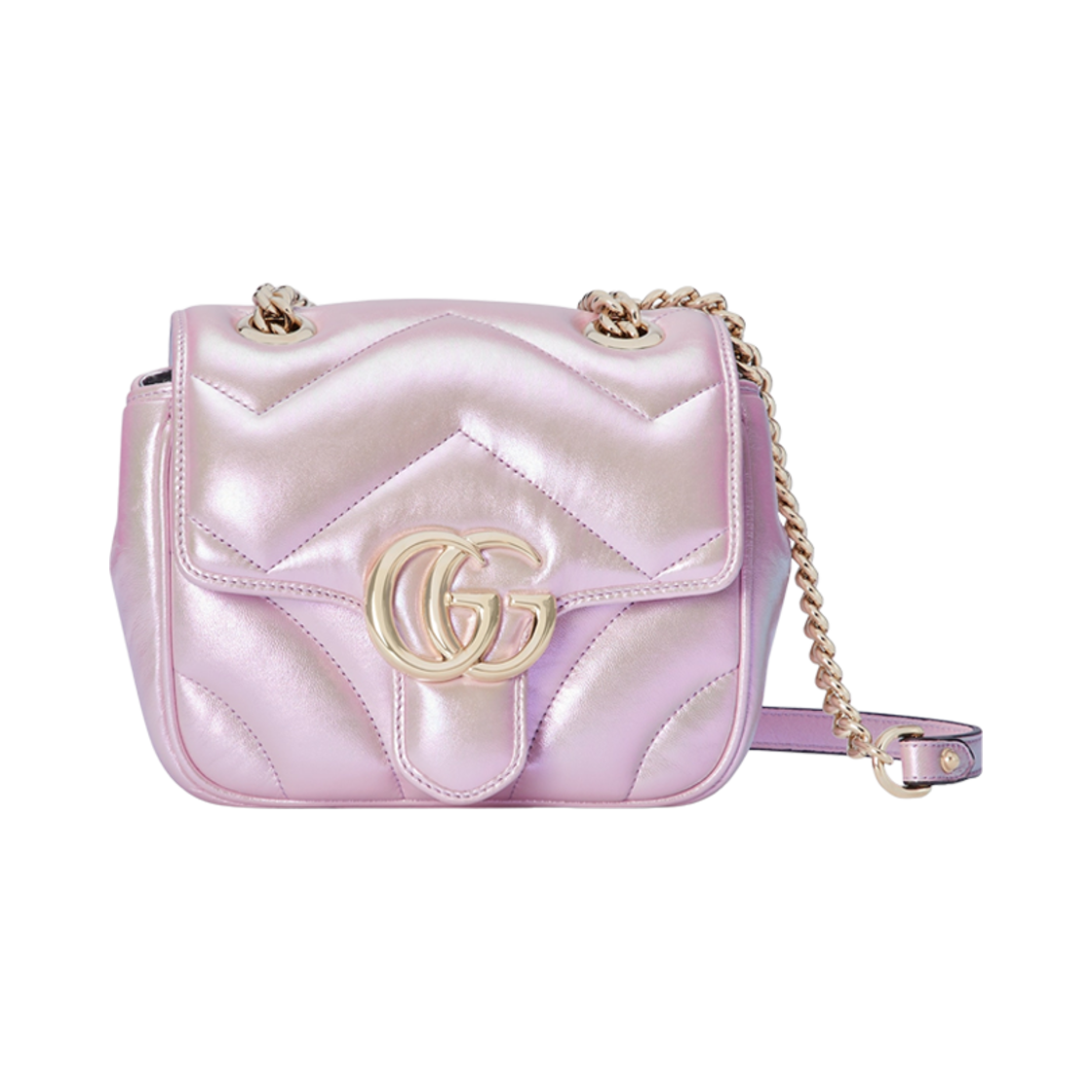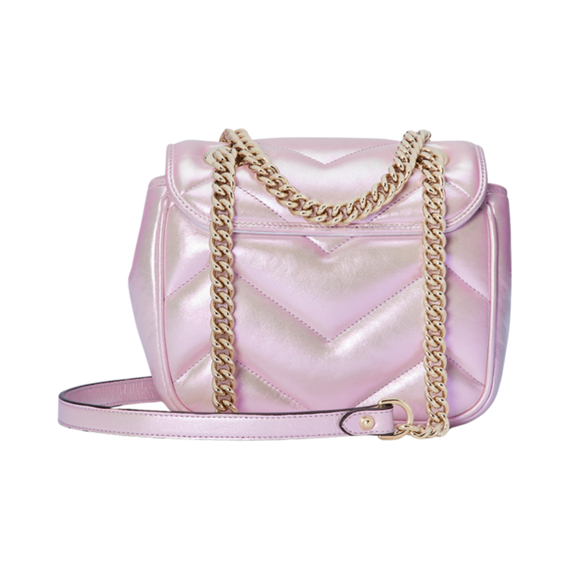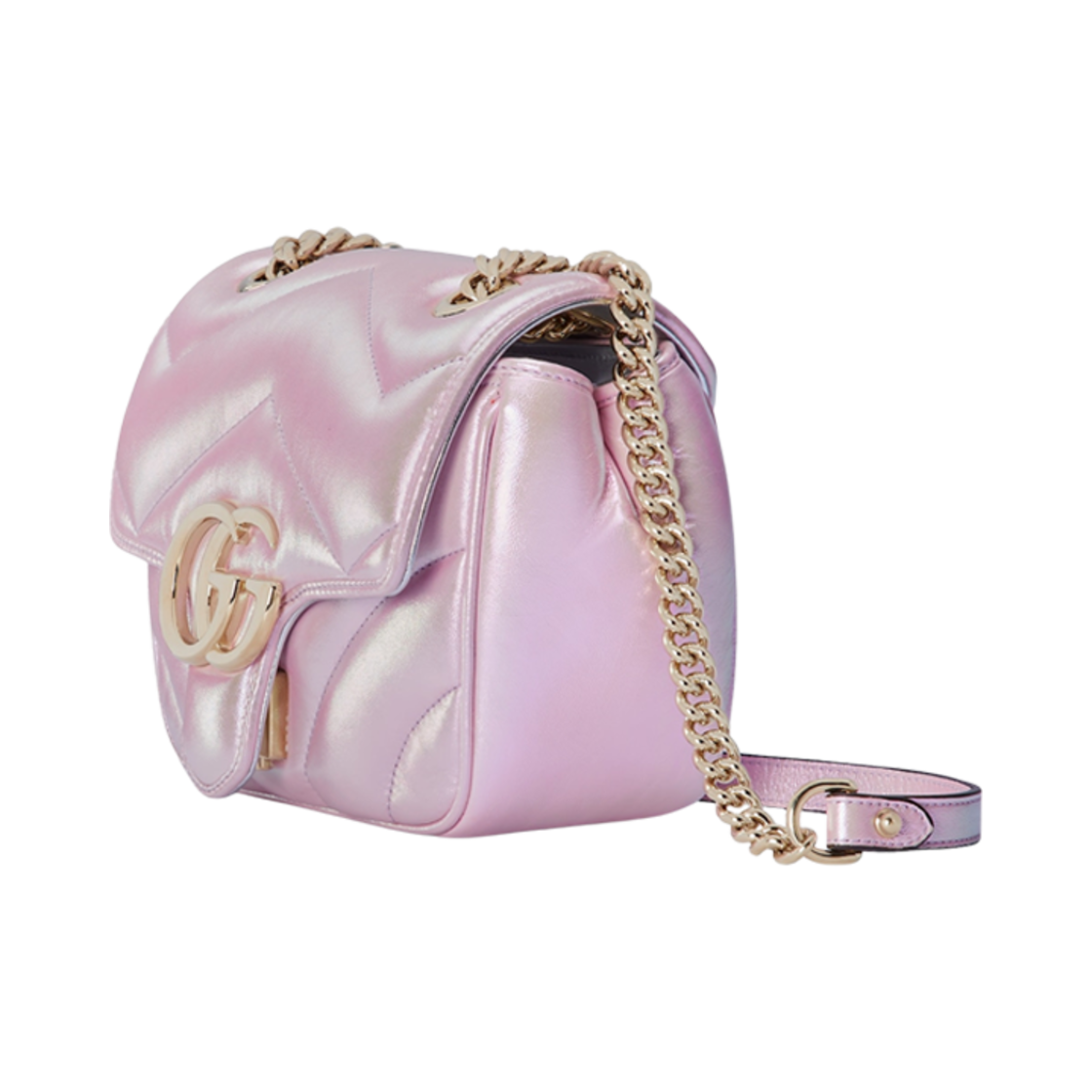 Gucci GG Marmont Mini Shoulder Bag Pink Iridescent Leather