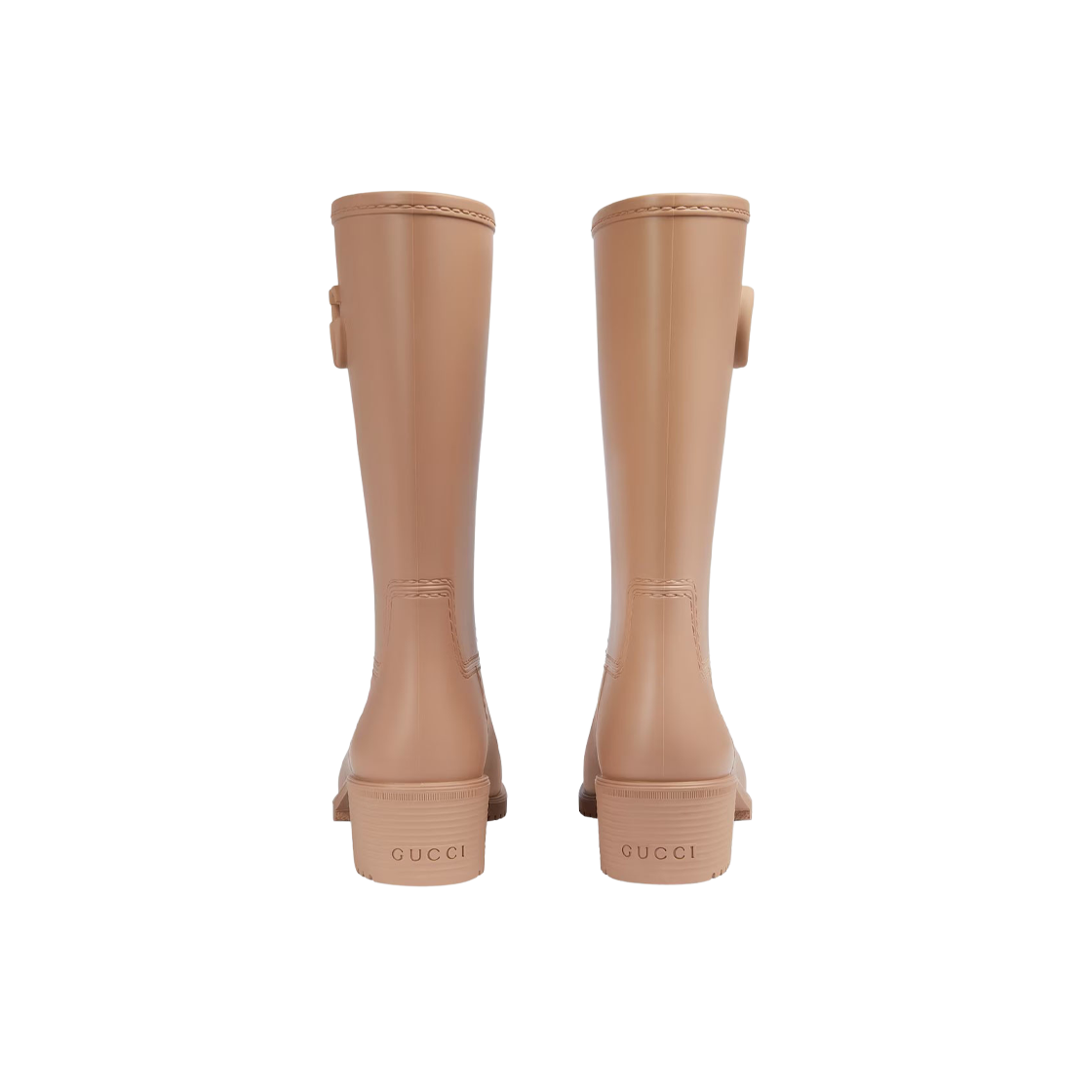 (W) Gucci Double G Rain Boot Light Brown Rubber