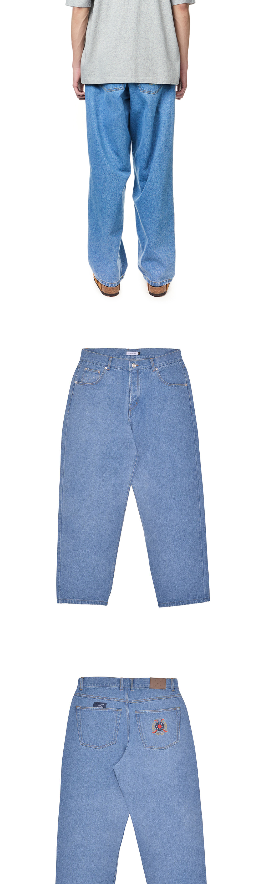 - 단추 잠금 - 코인 포켓에 팝 로고 자수 - 뒷 포켓의 네이비 팝 라벨 디테일 - 뒷면 포켓에 크레스트 아트웍 자수 - 허리 뒷면에 가죽 팝 청바지 패치 *모델 신체 스펙 - 185cm / 착용 사이즈 - L