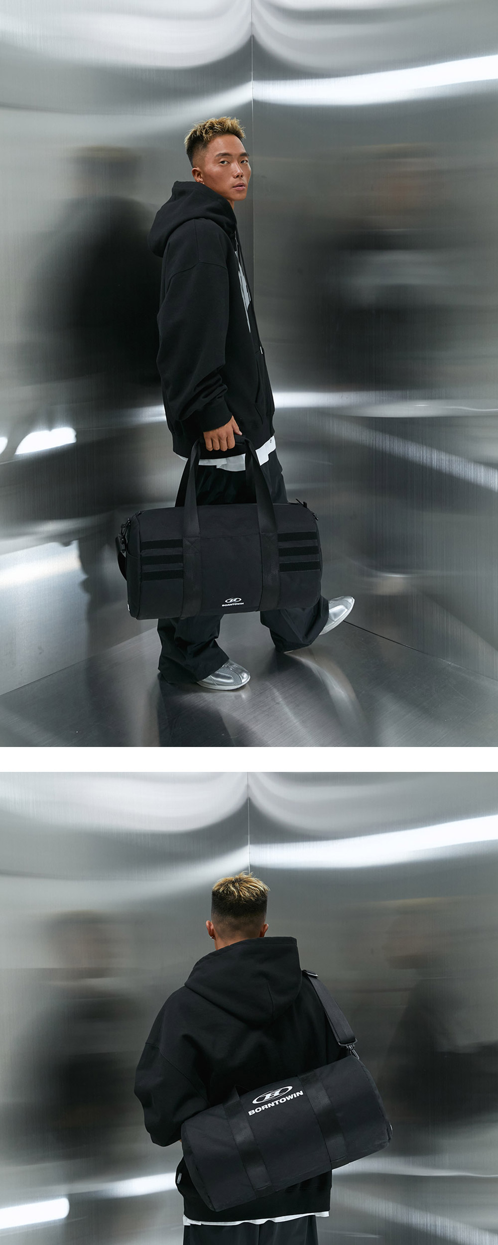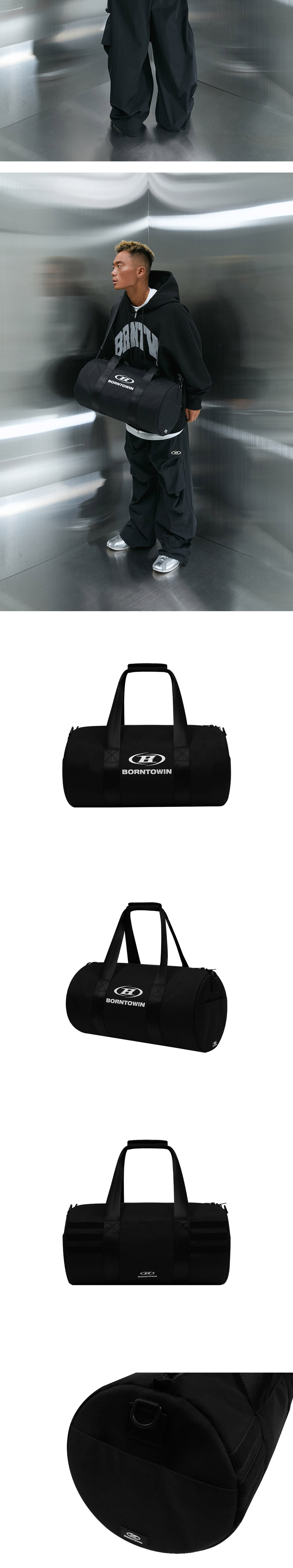 본투윈 짐백 B시리즈의 새로운 더플백 - 원통형 더플백 - 양면 로고 프린트 - 패치 부착 가능한 벨크로 디자인 - 핸드 스트랩 보호캡으로 내구성 강화 - 양측면 오픈 포켓 - 토이론 5T 내장으로 형태 보존력 강화
