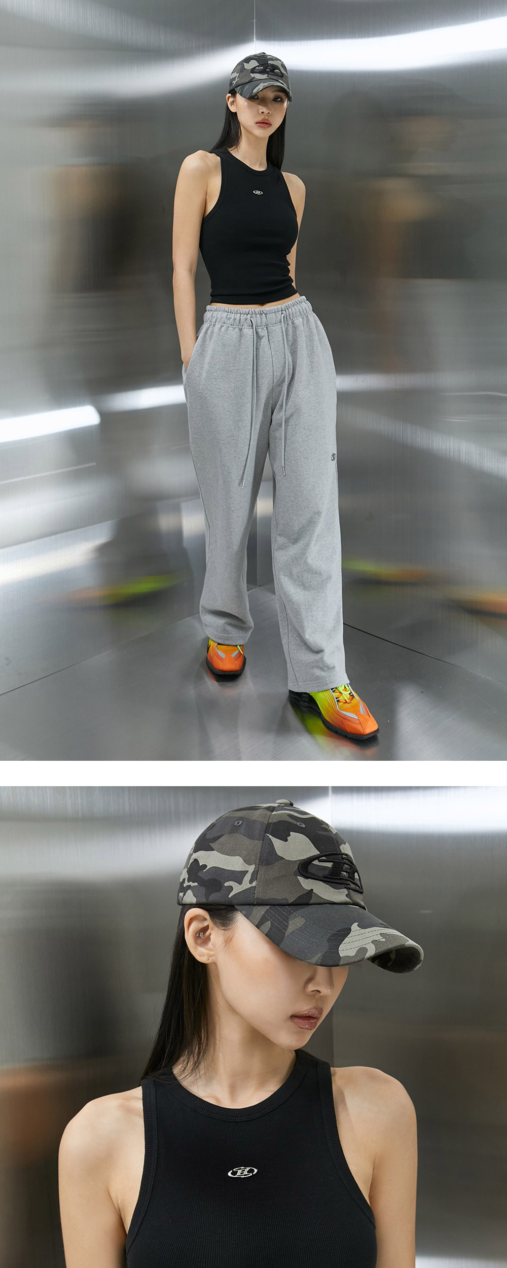 본투윈 B 심볼 빅 로고 볼캡 카모