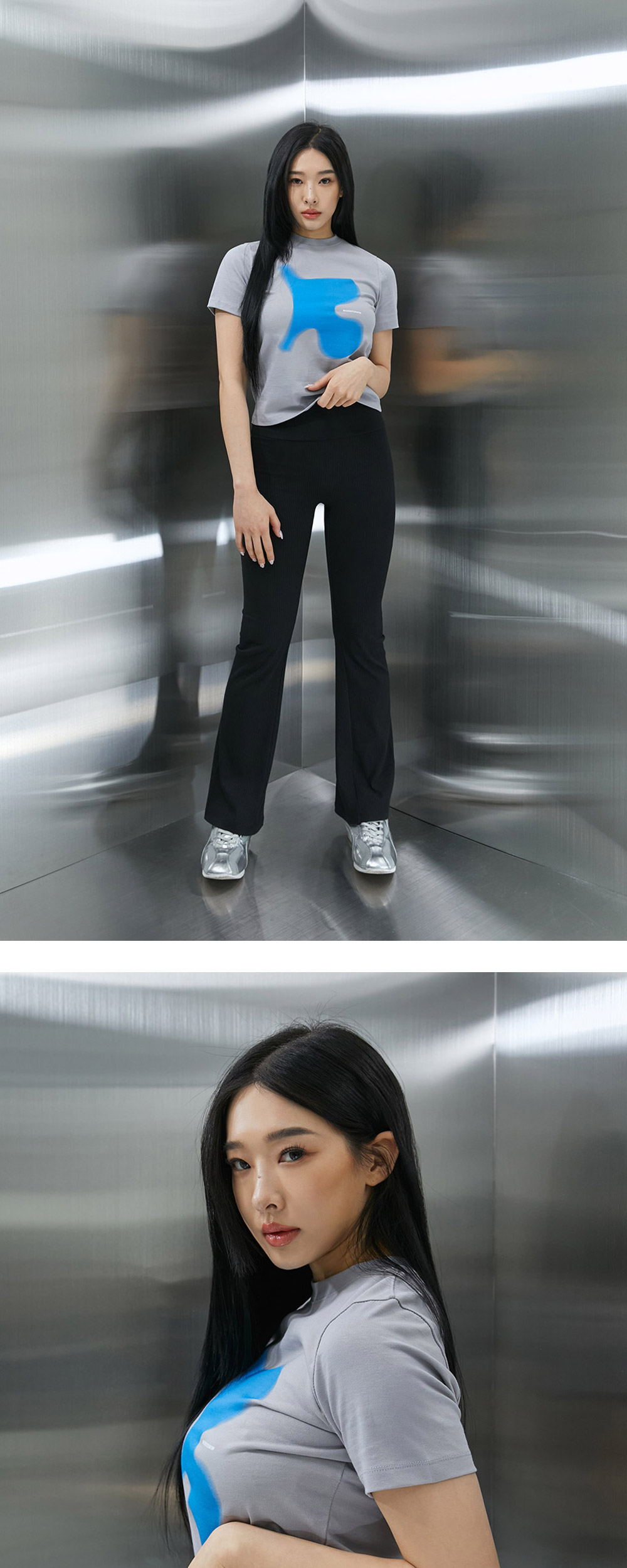 본투윈 퍼즐 B 세미 크롭 티셔츠 그레이