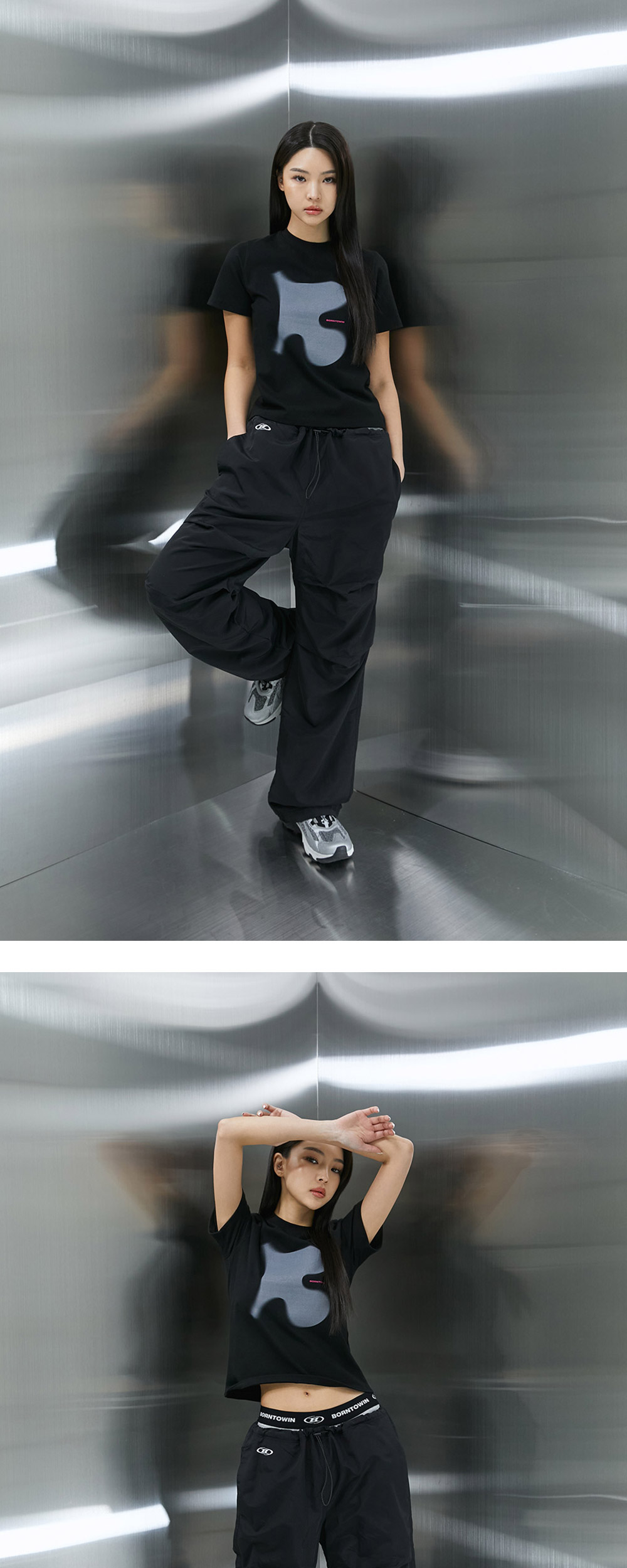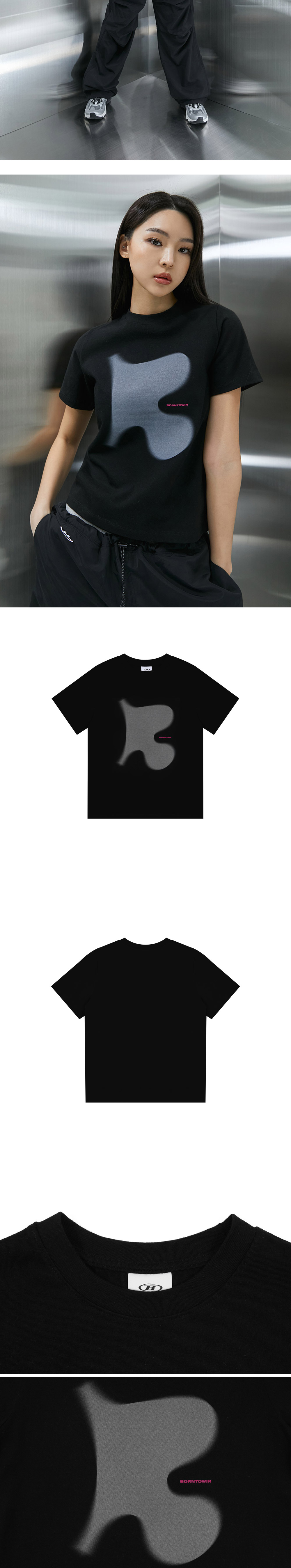 본투윈 퍼즐 B 세미 크롭 티셔츠 블랙