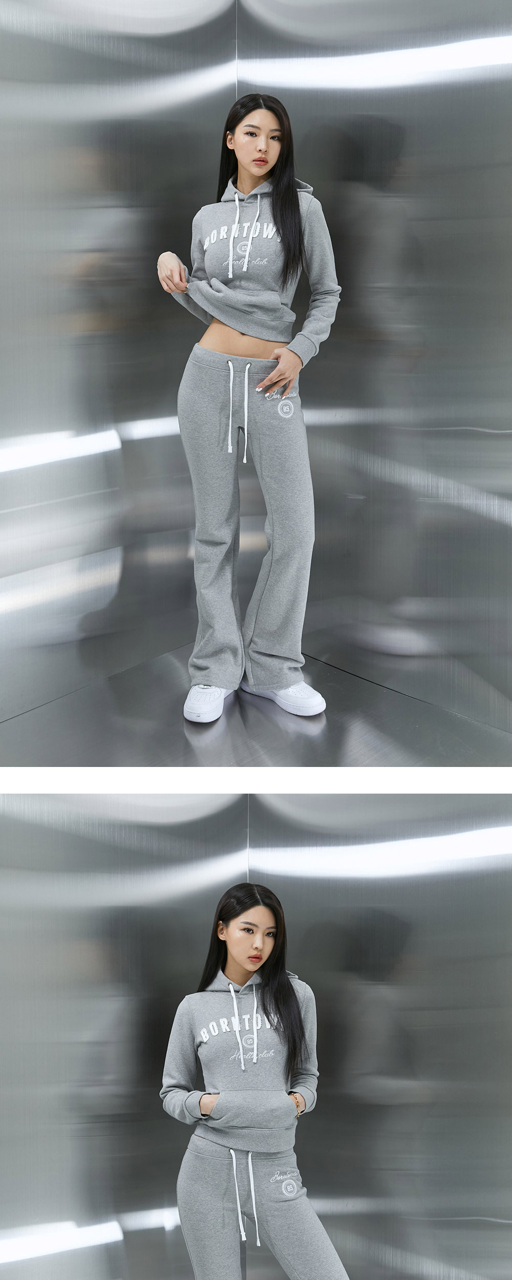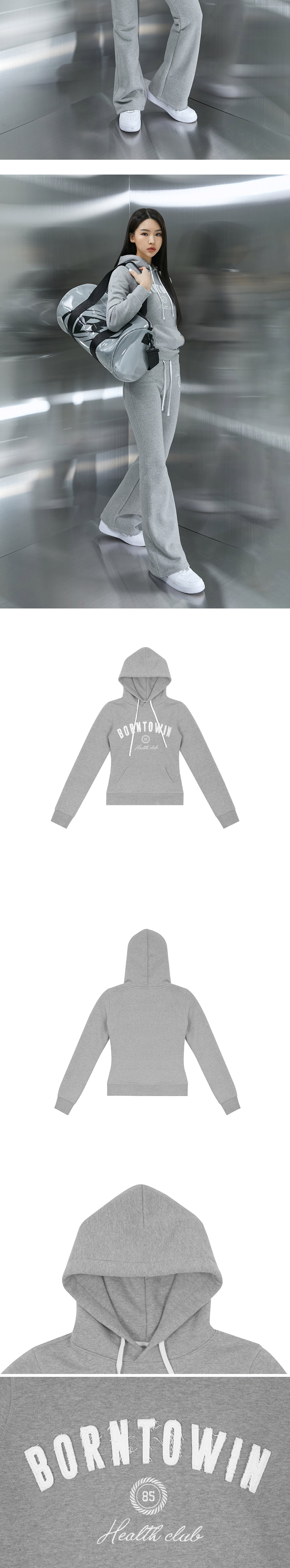아플리케 자수 세미 슬림핏 후디 -소프트한 고중량 테리 원단 - 워시드 아플리케 레터링 자수