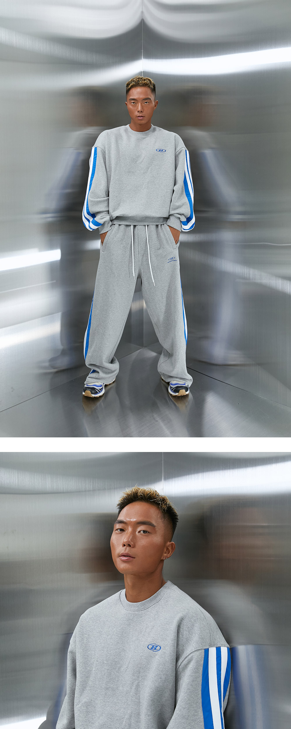 본투윈 심볼 B 블록 라인 스웻셔츠 멜란지그레이