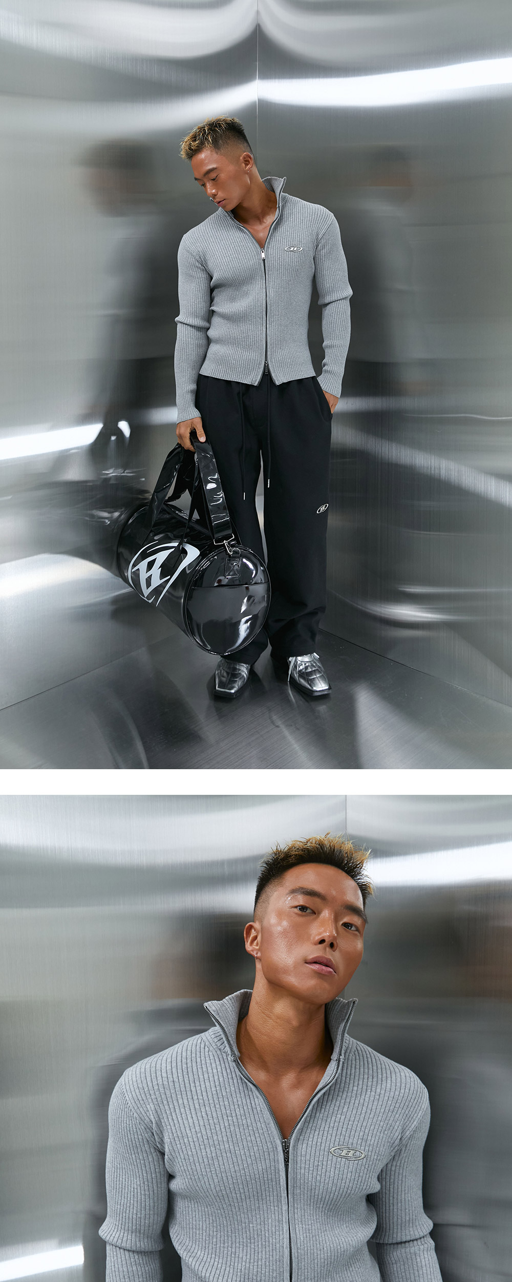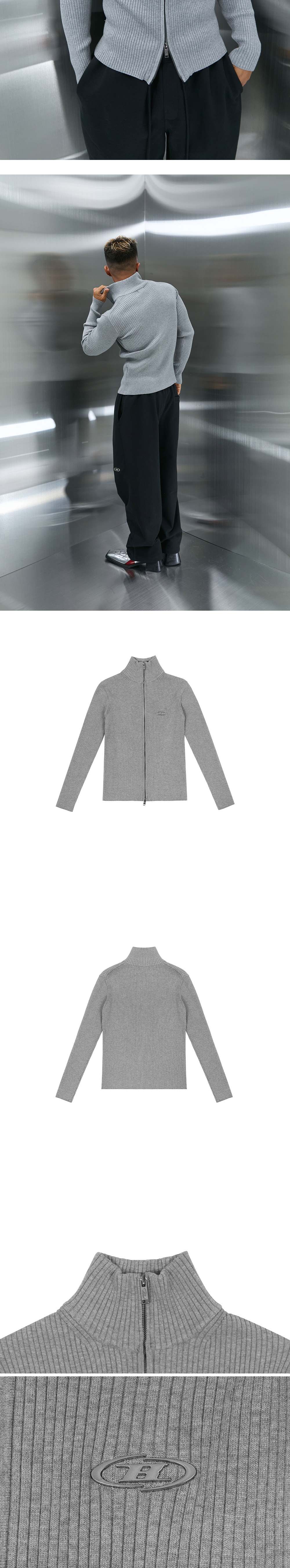 본투윈 머슬핏 풀 집업 니트 멜란지그레이