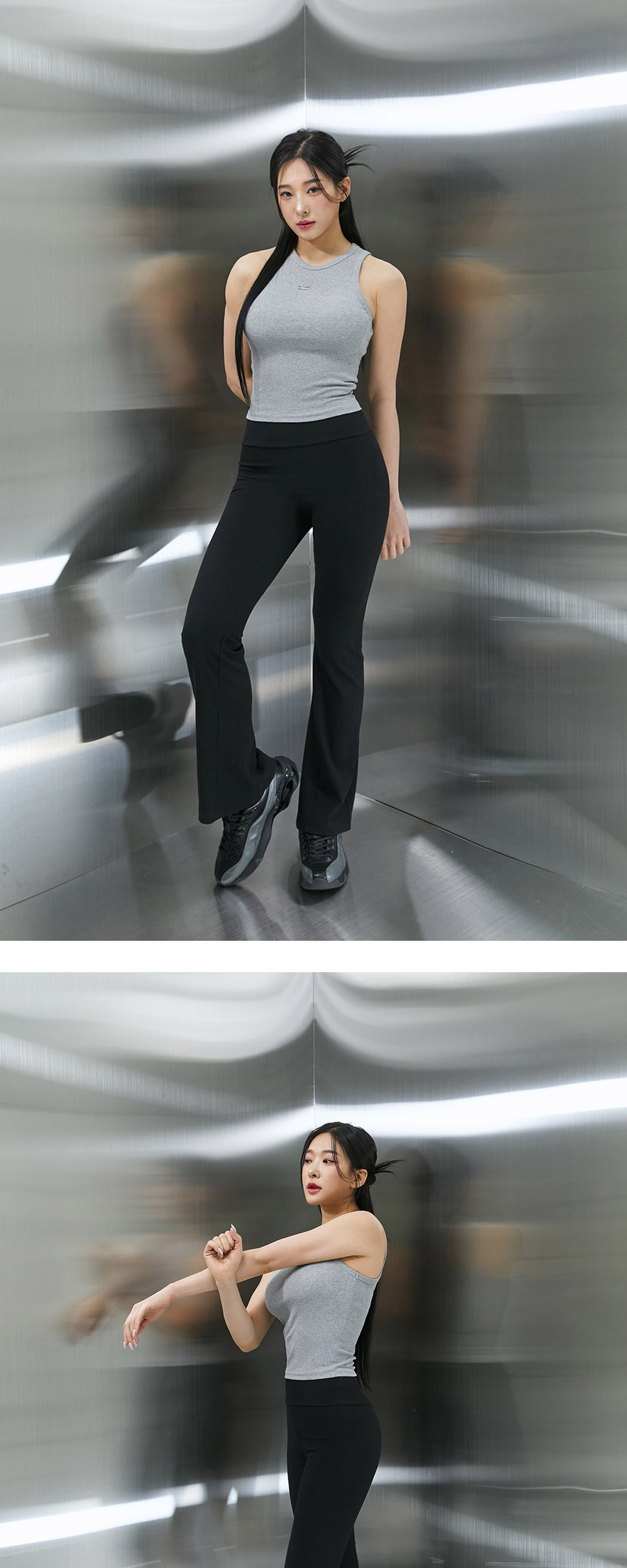 본투윈 B 펜던트 리브드 세미 크롭 슬리브리스 멜란지그레이