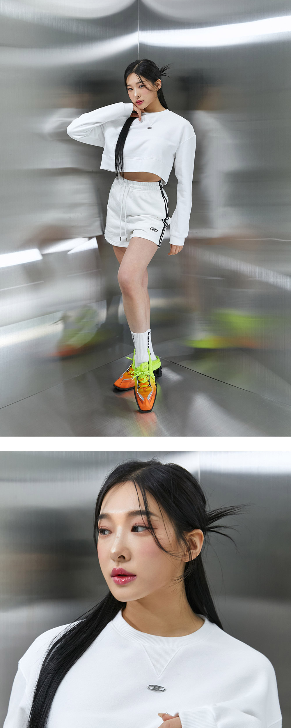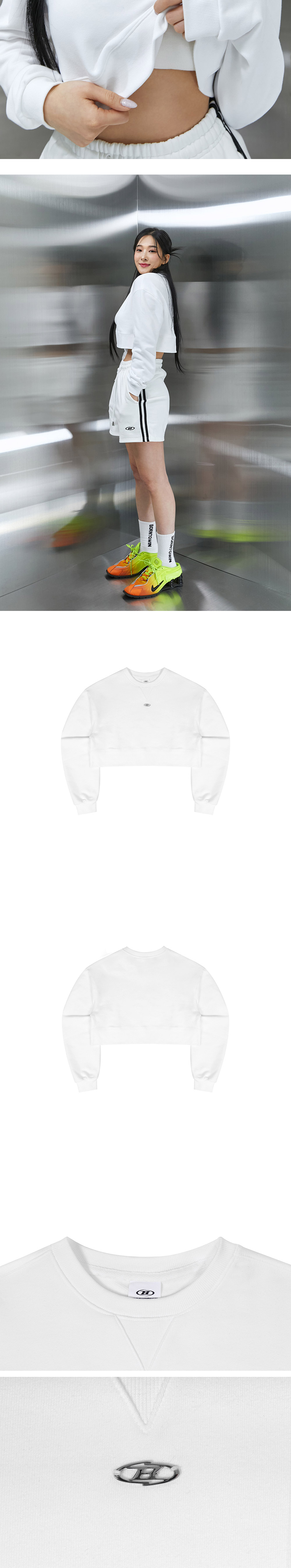 B로고 팬던트 크롭 스셔츠 - 써지컬 B로고 - 넥라인 삼각 거셋