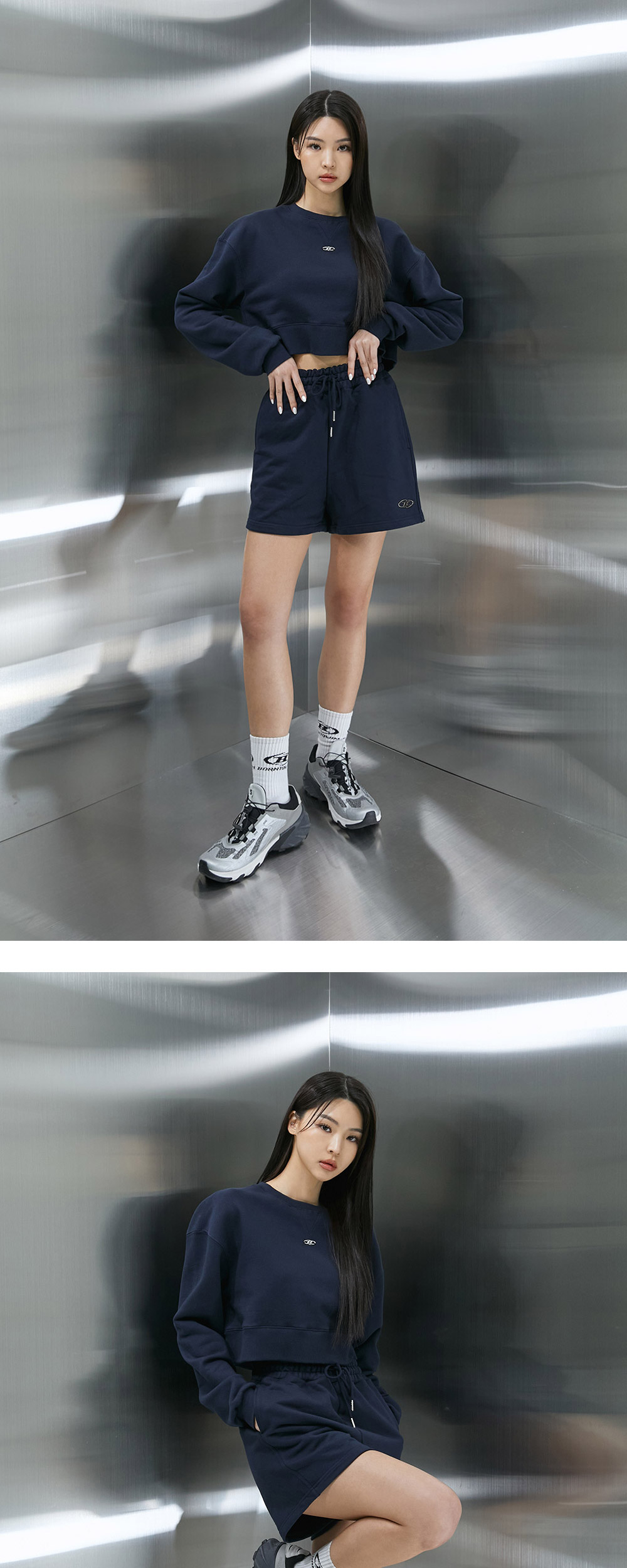 본투윈 B 펜던트 크롭 스웻셔츠 네이비