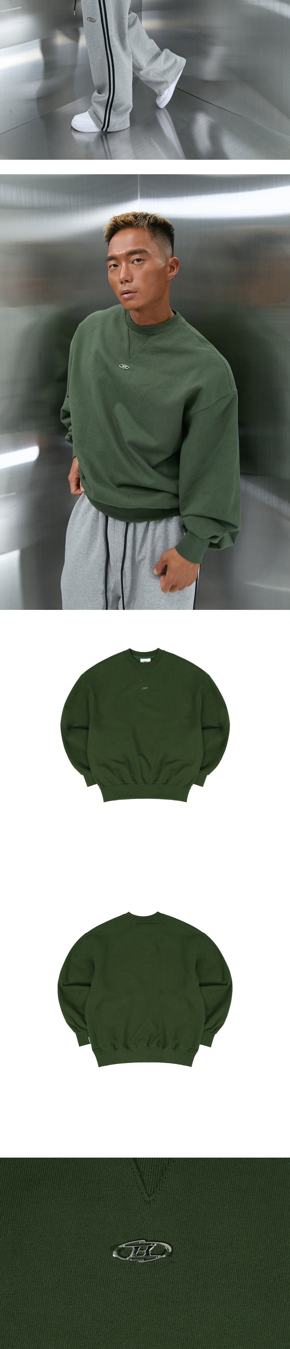 B로고 팬던트 베이직 스웨트셔츠 - 세미오버핏 - 넥 삼각거셋 디테일 - 사이드 라인 립 원단 배색 - 서지컬 B 로고 펜던트