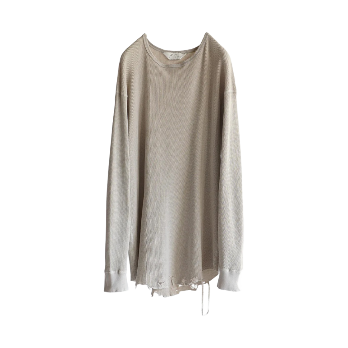 Ancellm Damage Waffle Crew LS T-Shirt Greige