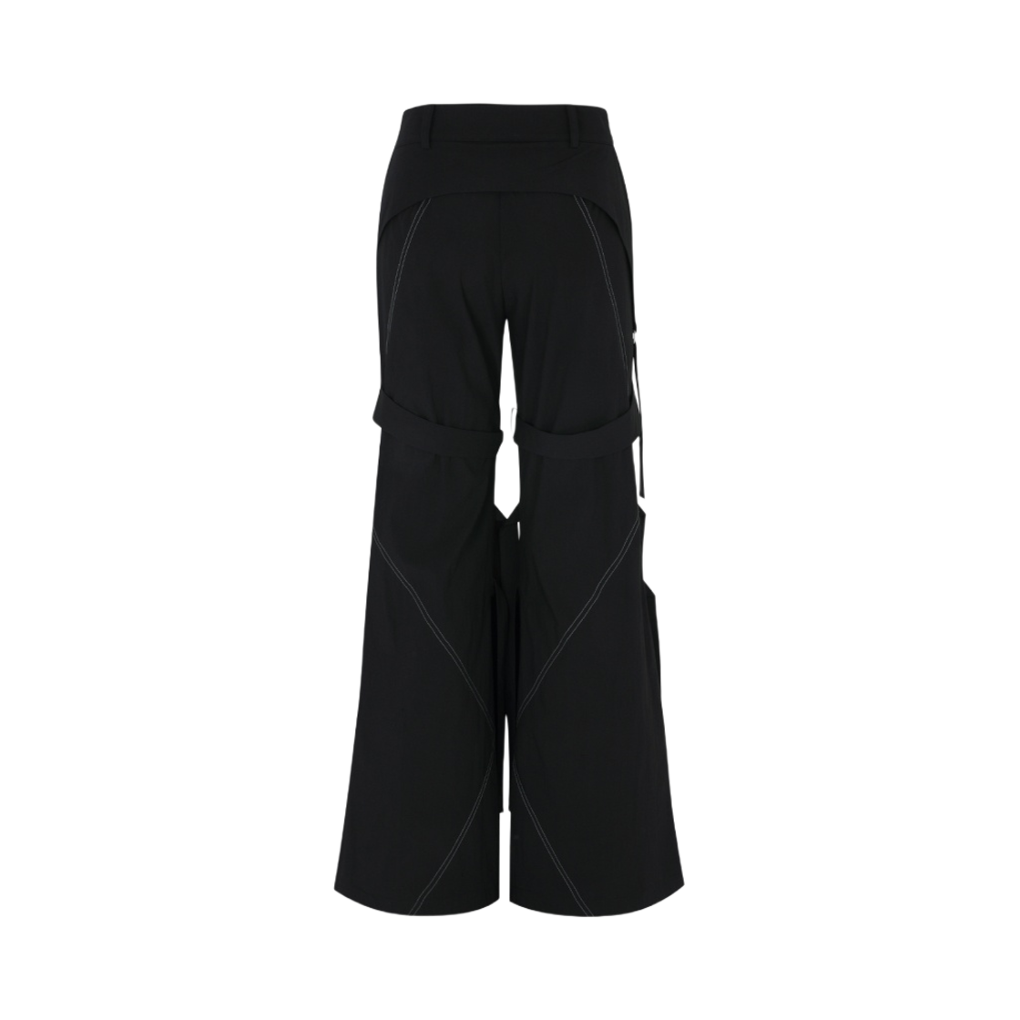 (W) Leey Strap Stitch Boots Cut Pants Black