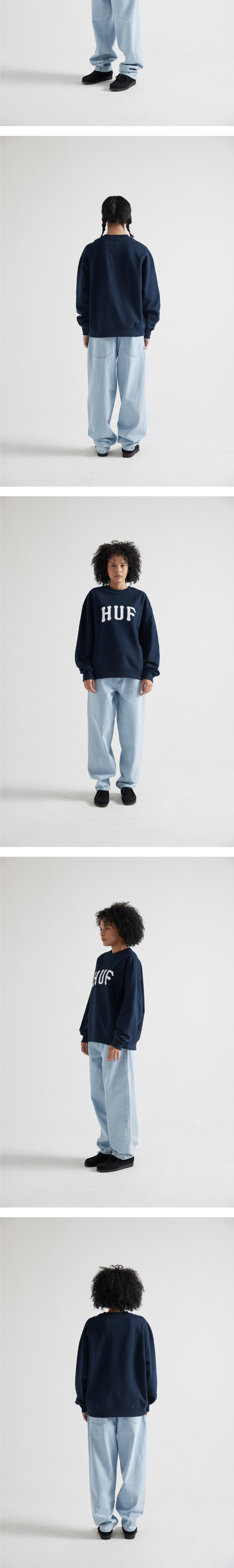 - 코튼 소재의 크루넥 - 전면 아치 형태의 나염 아트워크 - 목 내부의 허프 우븐 라벨
