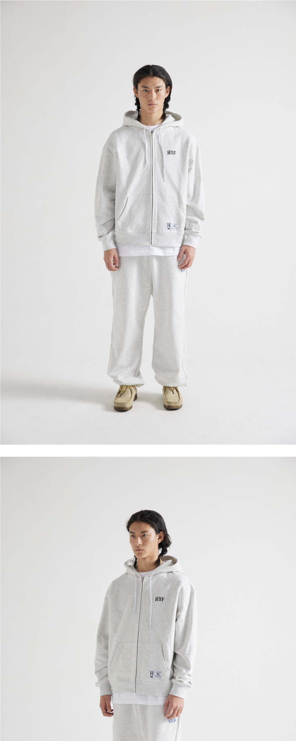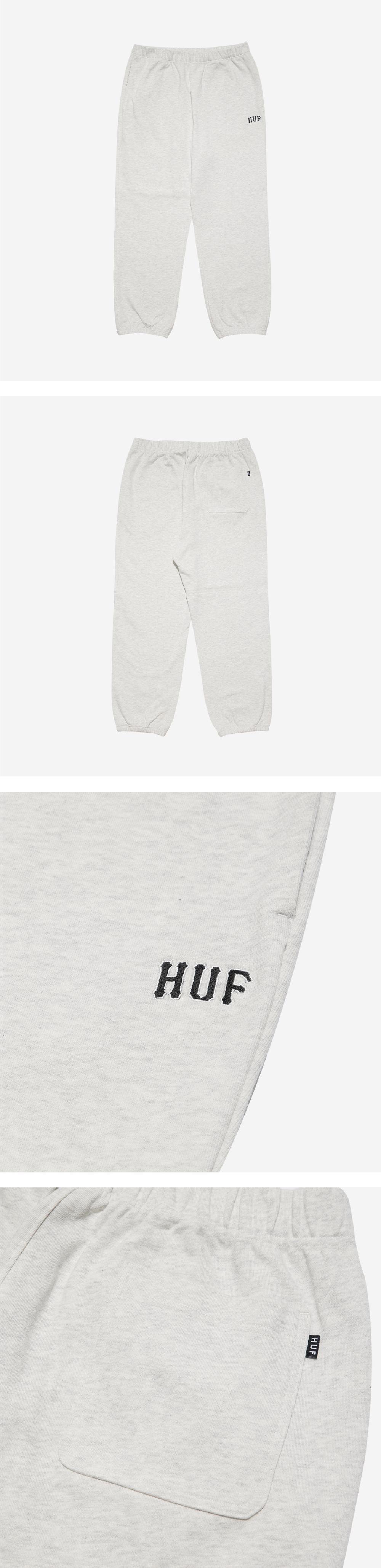 - 코튼 소재의 스웻팬츠 - 전면 좌측 아치 형태의 미니 자수 아트워크 - 허리 내부의 허프 우븐 라벨 - 후면 포켓의 허프 미니 라벨