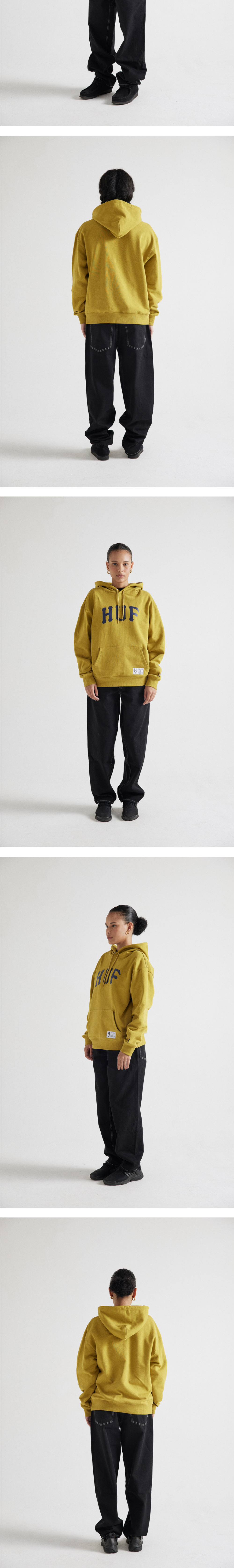 - 코튼 소재의 후디 - 전면 아치 형태의 나염 아트워크 - 포켓 좌측의 디테일 라벨 - 좌측 소매등 미니 ‘H’ 자수 로고 - 목 내부의 허프 우븐 라벨 - 좌측 하단의 허프 미니 라벨
