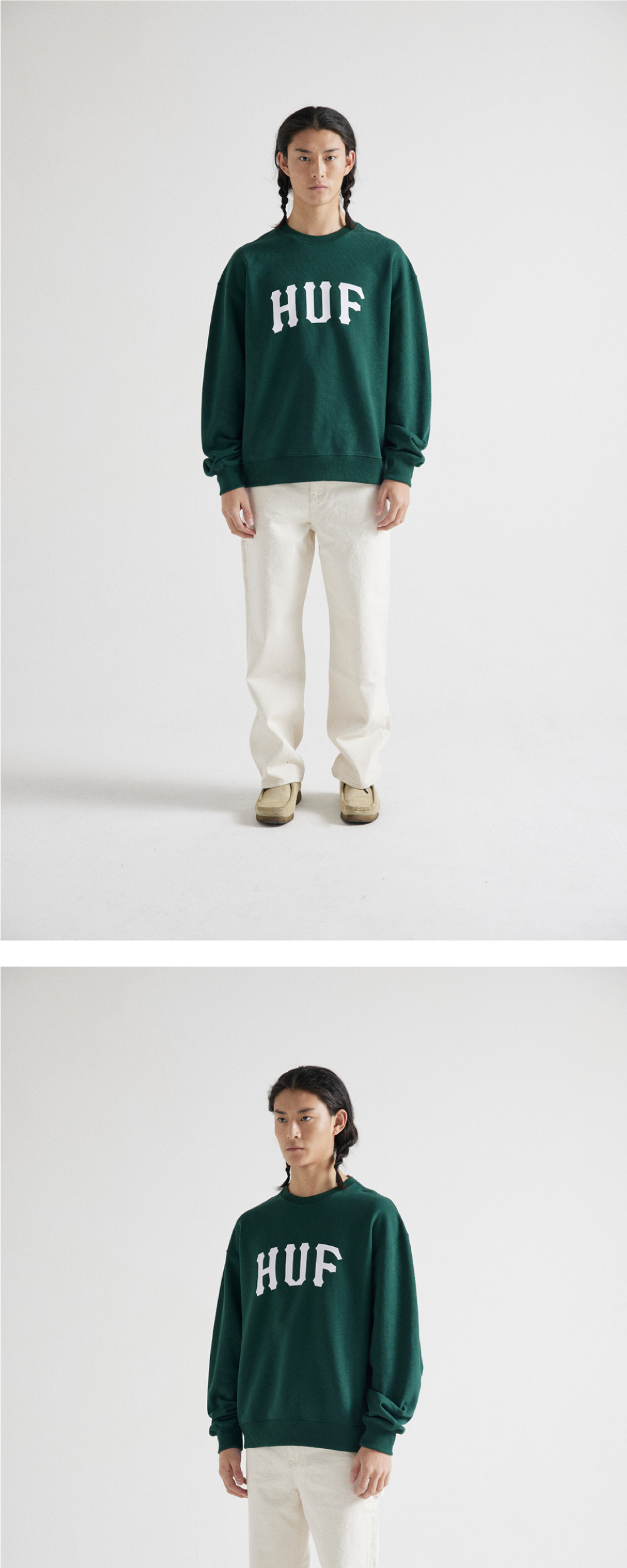 - 코튼 소재의 크루넥 - 전면 아치 형태의 나염 아트워크 - 목 내부의 허프 우븐 라벨